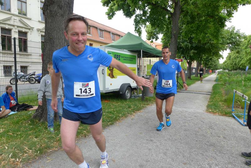 Das Rahmenprogram in der Herrenbreite war vielfältig. Während manche Teilnehmer in den Laufpausen das Sportabzeichen ablegten, erproben sich andere im modernen Biathlon. Mitunter kam es vor, dass der einlaufende Sportler vergebens nach seiner Ablösung Ausschau hielt und erneut auf die Runde gehen musste. Aus dem Team „LEX Laufexperten“ feierte Finn Lampe erst vor ein paar Tagen seinen sechsten Geburtstag. Er war nicht nur der jüngste Teilnehmer des 8-Stunden-Laufes, er war auch der ehrgeizigste! Mit Jan Hübner (8 Jahre) hatten sich zwei gefunden, die nicht zu stoppen waren. Inzwischen hatte die Physiotherapie viel zu tun. Auf der Liege wurden hart gelaufene Waden, Muskelkrämpfe oder Rückenschmerzen direkt vor Ort bekämpft. Über acht Stunden sorgte der Veranstalter für eine optimale Verpflegung der Läufer. Jens-Uwe Börner wähnte sich bereits im Cola-Schlaraffenland. Die Rundenauswertung wurde zu jeder vollen Stunde bekannt gegeben. Am Ende standen 105 Runden im Ergebnisprotokoll der Clopay-Männer-Staffel. Für die Mix-Staffel der „LEX Laufexperten“ erlief Wirbelwind Lampe stolze zehn Runden. Viele Teams ließen es sich nicht nehmen, die letzte Runde dieses langen Laufevents gemeinsam zu genießen. Der 2. Aschersleber BewegWasTag ging mit 1.361 erlaufenden Kilometern in das Protokoll ein. Das ist im nächsten Jahr bestimmt noch zu toppen.