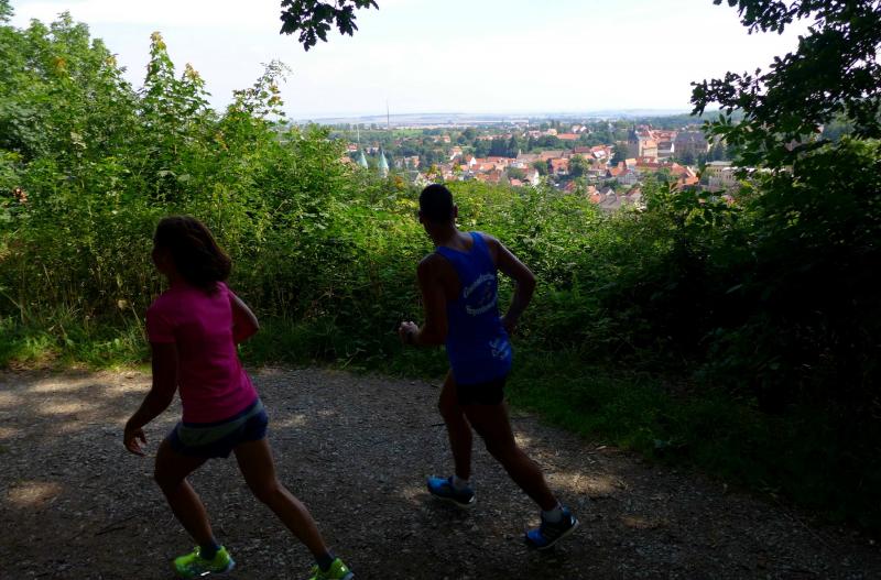 Drei weitere Starterinnen der Gaensefurther Sportbewegung nutzten den Ottonenlauf als erste lange Trainingseinheit für einen anstehenden Herbstmarathon. „Ein gutes, gleichmäßiges Tempo habt ihr Frauen immer!“ resümierte Ronald Kijok vom SV Concordia 1920 Nachterstedt und passte seinen Schritt den Bode-Runners an. Auch die Nordhessin Antje Hollstein reihte sich mit ein. Sie war mit der ganzen Familie angereist und belief auf diese Art und Weise die landschaftlich reizvolle Harzregion. Nach der Verpflegungsstelle am Osterteich trennten sich die Wege dann wieder. Petra Becker kam am besten mit den Bedingungen klar. Für jede Bergerklimmung belohnte sie sich mit einem kleinen Leckerli aus ihrem Laufgürtel und auch die Hitze konnte dem Blondschopf unter dem weißen Käppi nicht wirklich etwas anhaben. Sylvia Köhn und Sabine Börner stöhnten sich die Berge gemeinsam rauf. Nach 345 erreichten Höhenmetern und einem lauten Jubelschrei am Hagentalblick, ließen es die beiden hinab nach Bad Suderode locker austrudeln. Nun standen nur noch sechs heiße Kilometer an, die man Dank ausreichender Verpflegungspunkte gut getränkt absolvieren konnte. Die Eindrücke vom Zieleinlauf im Quedlinburger Stadion hielten noch an, da klatschte auch Kijok zufrieden ab. Sein grünes Finisher-T-Shirt, welches er sich extra für seine Ottonenläufe angeschafft hat, wird demnächst um einen weiteren Aufdruck ergänzt werden müssen. Unter respektvollem Beifall liefen viele weitere Sportler der Marathon- oder Ultradistanz über 69 Bergkilometer von Stiege bis nach Quedlinburg ein. Das wäre doch mal ein Gaensefurther Projekt für die kommende Laufsaison.
