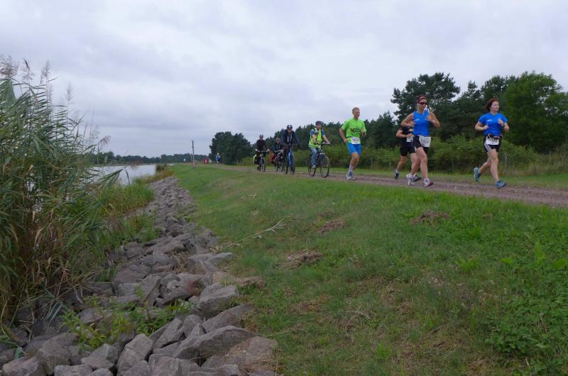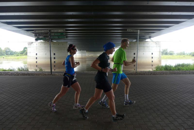 Auch Sylvia Köhn, Dirk Meier und Jörg Schäper stehen mitten im Trainingsplan für einen Marathon im Oktober und nutzten den Kanal-Ultra-Lauf als Vorbereitung. Dass es bei Köhn besonders gut lief, beruhigte die Nerven ungemein. Während den Männern der Gegenwind kaum etwas ausmachte, gestaltete sich der Rückweg für die Mädels sehr beschwerlich. Köhn kämpfte und siegte, Sabine Börner suchte Schutz hinter breiten Läuferschultern und Petra Becker arrangierte sich mit Wind und Lauftempo. Für die drei stand fest: Heute wären wir an der 60-Kilometer-Distanz gescheitert. Kaum zu glauben, dass seit sieben Uhr die Ultras auf den Beinen waren, die diese Strecke zweimal zu absolvieren hatten.