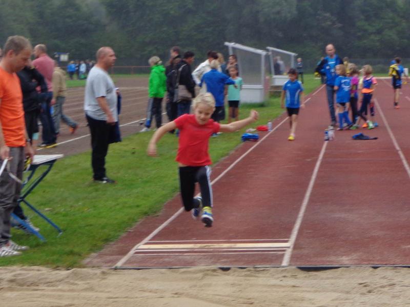 Einen ganzen Medaillensatz konnte Celine Ladehoff (w12) mit nach Hause nehmen. Sie trat im 800m Lauf (1.), Hochsprung (2.) und Kugelstoß (3./PB) an.