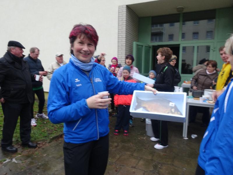 " Lebende Karpfen aus einer Tonne zu fischen wie vor 34 Jahren beim ersten Staßfurter Silvesterkarpfenlauf im damaligen Leninring - auf diesen Spaß müssen die Teilnehmer heutzutage verzichten. Nicht weniger freuten sich aber die Gewinner der 20 Schuppentiere, die am Silvestervormittag 2014 ausgelost wurden. Sigrid Herrmanns vom SV Salzland und ihr Team sorgten wieder hervorragend für diesen sportlichen Ausklang, bei dem es Dank Sponsoren nicht nur die Karpfen- das Stück für fünf bis acht Euro übrigens- zu verlosen gab, sondern auch Glühwein und Würstchen gratis verteilt wurden. Die Gymnastikgruppenleiterin zählte etwa 60 Teilnehmer- unter ihnen auch OB-Kandidat Sven Wagner, der seit Jahren schon hier startet- und Zuschauer. Den Startschuß ließ sich Oberbürgermeister René Zok nicht nehmen. Als erfolgreichstes Team ging Familie Albrecht aus Staßfurt auf die anderthalb Kilometer lange Strecke ums Karrè..."