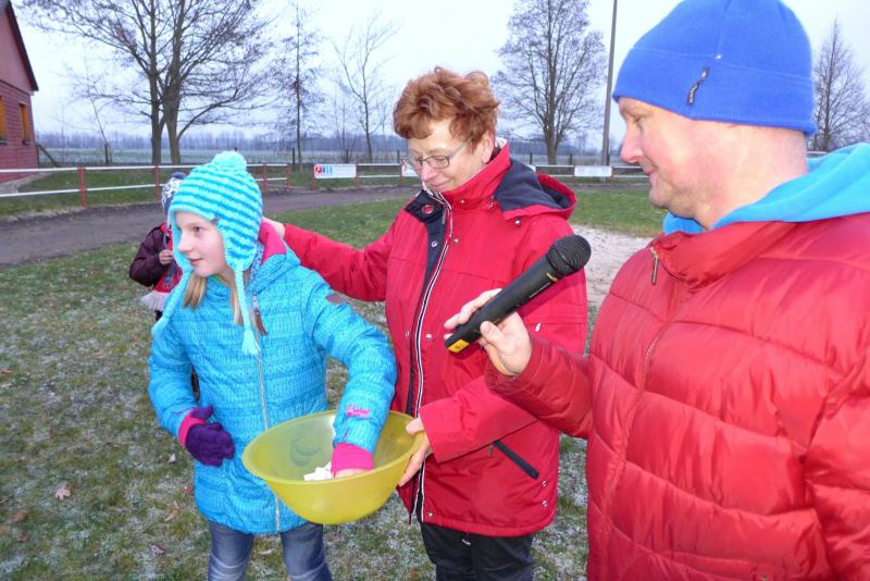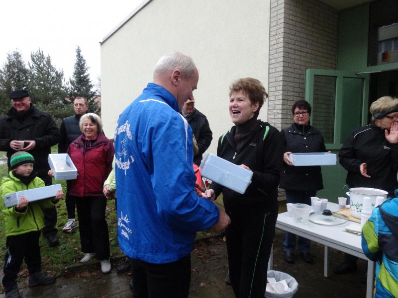 Der Atzendorfer Silvesterlauf ist eine echte Breitensportveranstaltung, die Sportler und auch Einwohner vor den Anstrengungen der Silvesternacht nochmal an die frische Winterluft locken soll. Es sind zwar Strecken ausgewiesen, aber jeder kann sie so zurücklegen, wie er möchte. Und auch die Streckenlänge, je nach dem, was man sich zutraut… Vereinsvorsitzender Günter Döbbel vollzog den Start mit einem Silvester-Knaller. Nach zehn Minuten kamen die Ersten ins Ziel... Als alle den Sportplatz erreicht hatten, nahm der zweite ZLG-Vorsitzende Uwe Grenzau die Karpfenverlosung vor. Anschließend zeichnete der ZLG-Vorsitzende die sechs schnellsten Läufer und Walker auf der langen 3000-Meter-Strecke aus: Ina Schöler, Uta Schön, Christa Steinsdorf, Arthur Knoll, Alfred Siebert und Günter Tappenbeck.