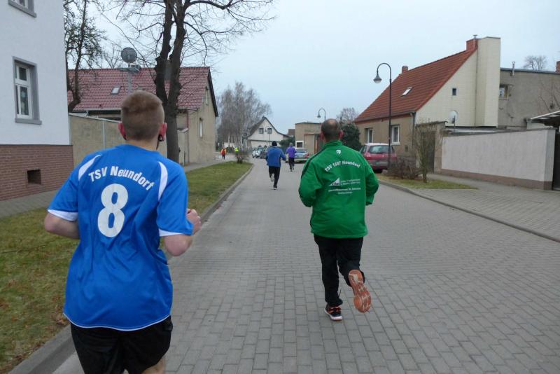 "Bereits zum zweiten Mal hatte der TSV 1887 Neundorf/Anh. zum Jahresabschluss einen Silvesterlauf deklariert und der Zuspruch der Besucher hat dem Veranstalter recht gegeben. Als erstes wurde der Kinderlauf im Fackelschein vom stellvertretenden Ortsbürgermeister Fred Hänsel gestartet. Sieger war Jonas Stelter, Fußballer bei der Jugend des TSV. Prämiert mit einem Kinogutschein wurden die drei Besten, aber auch für den Rest der teilnehmenden Kinder gab es ein kleines Präsent. Der Lauf führte die Teilnehmer durch die intakten Straßen des Ortes. Eine Dreiviertel-Sportplatzrunde als Zugabe und die 41 Starter waren wieder im Ziel. Da der Silvesterlauf als Ziel die gesellige Verabschiedung des alten Jahres hat, wird auf eine Bekanntgabe der Platzierungen verzichtet, wobei der beste Mann einen Karpfen und die schnellste Frau eine Flasche Sekt als Preis erhielten. Unter den Teilnehmern wurden zwei weitere Karpfen und Silvesterbegrüßungsgetränke verlost.