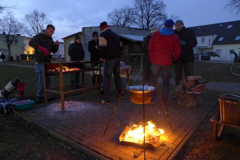 "Emsiges Treiben herrschte wie an jedem Silvestermorgen wieder am Sportplatz in Atzendorf. Die fleißigen Organisatoren der Landsportgemeinschaft waren beim Glühwein erhitzen und Startnummern verteilen für den Silvesterlauf 2014.