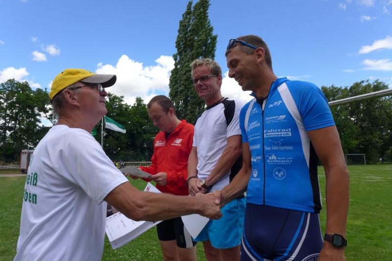 Auf der 9,8 km Strecke gab es zwei erste Plätze durch Maik Löwe (m20) und Stefan Berger (m50), Josef Hindricks (m60) wurde Dritter.