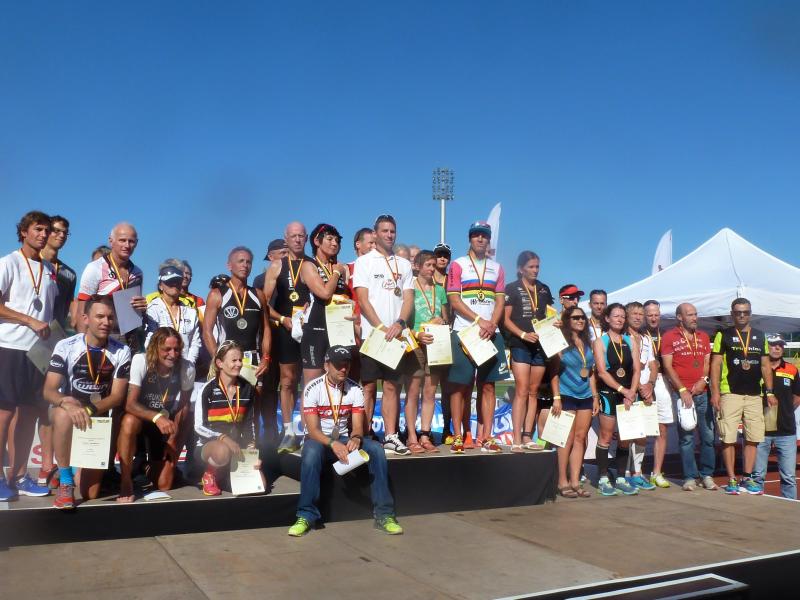 Jürgen Eisfeld zeigt mit seinen 74 Jahren mal wieder wo der Hammer hängt. Stöhnten doch alle Wettkämpfer über die derzeit herrschenden Temperaturen, kann das Eisfeld nicht davon abhalten bei wahnsinnigen 38°C an den Start bei den Deutschen Meisterschaften in der Duathlon-Langdistanz zu gehen.