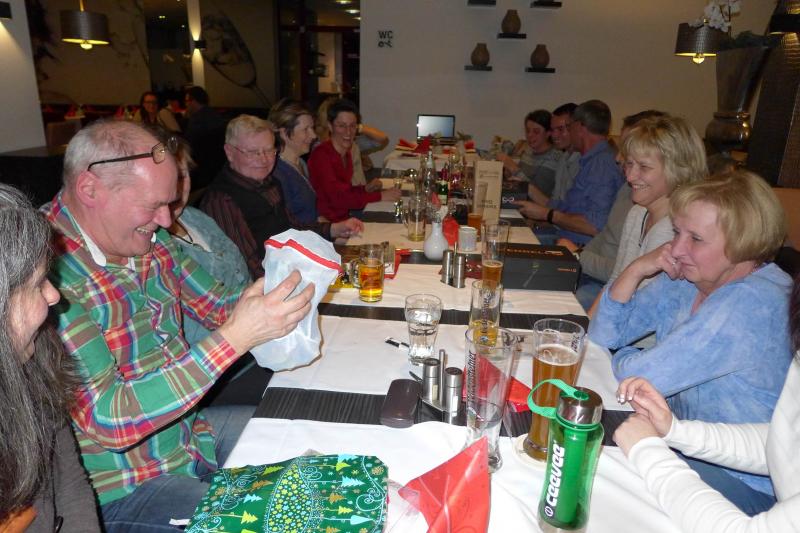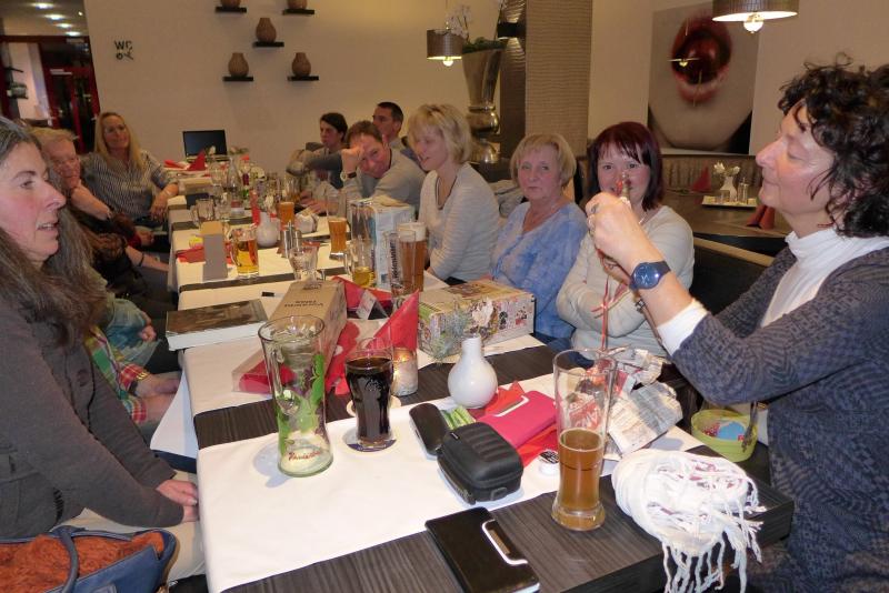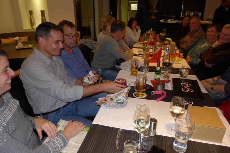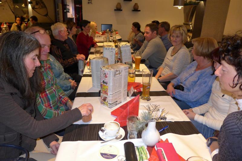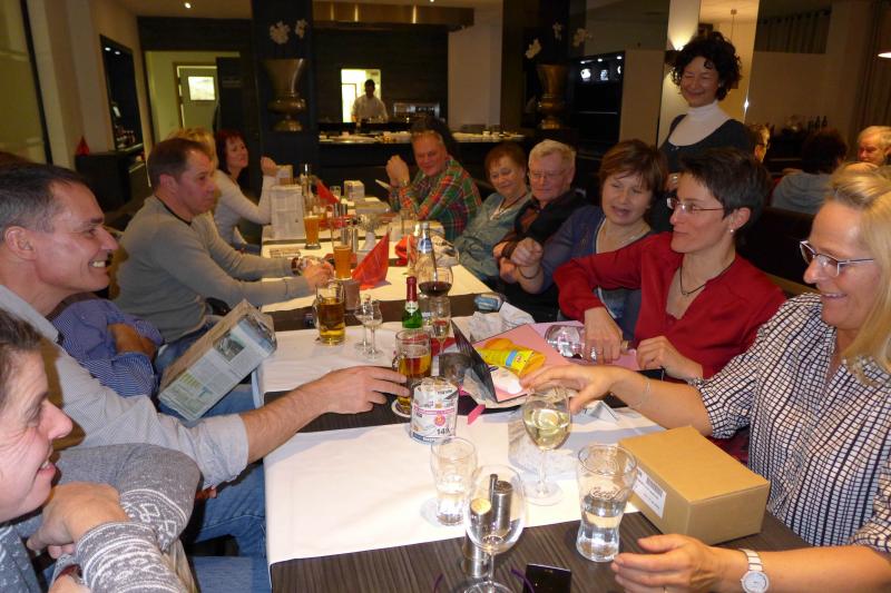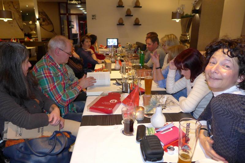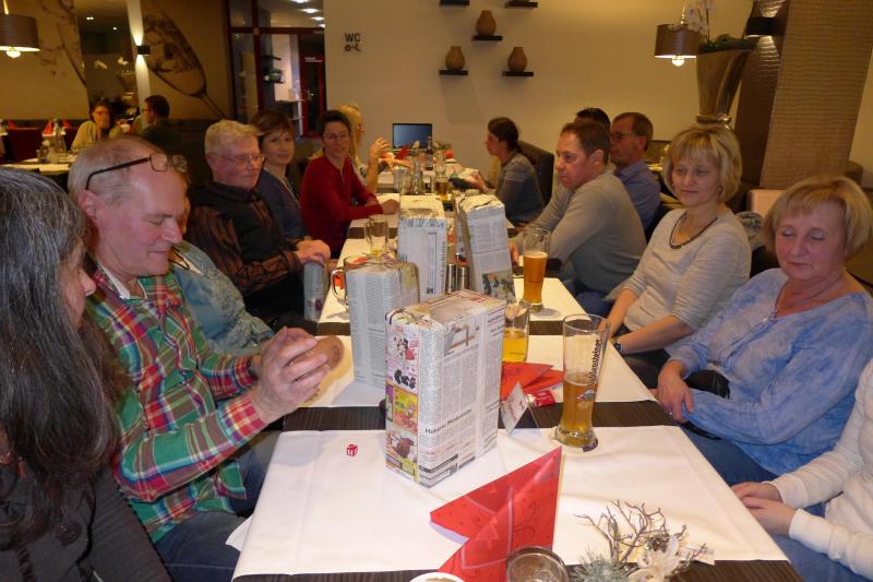 Die üppigen Weihnachtsessen waren inzwischen verdaut und ein Blick auf den druckfrischen Wettkampfkalender verriet Platz an diesem kalten Februarwochenende. So verabredeten sich die Bode-Runners der Gaensefurther Sportbewegung für ihre diesjährige Feierlichkeit im Staßfurter Salzlandcenter. Mal ganz ohne sportliche Betätigung war nur Schlemmen vom Buffet und gemütliches Beisammensein vorgesehen. Eine Fotoauswahl vom zurückliegenden Wettkampfjahr, brachte dann so manch vergessenes Erlebnis schnell wieder in Erinnerung. Nach einem weiteren Bierchen wechselten die mitgebrachten Schrottwichtelpakete amüsant ihre Besitzer. Wohl vorausahnend, dass alle neuen Mitglieder eine „Aufnahmeprüfung“ im Kreise der Runners erwartet, hatten kurioser Weise alle vier Neuzugänge eine andere Verpflichtung an diesem Abend. So blieben die alten Bodis unter sich und testeten in einem weiteren Tischspiel ihre bevorstehende Zugfahrt zum Drei-Länder-Marathon nach Bregenz. Das Ergebnis fiel eindeutig aus - ganze vier Umstiege und über neun Stunden Fahrzeit sind einfach zu anstrengend vor einem Marathon, da müssen dann wohl die Autos ran.