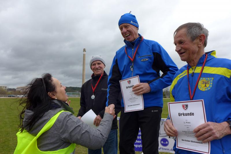 Der Regensteinlauf war die zweite Station der diesjährigen Novo-Nordisk-Landescup-Serie der Volksläufer in Sachsen-Anhalt. Bereits zum 21. Mal richtete der SV Lok Blankenburg diese Veranstaltung aus und trotz anfänglichen Dauerregens, konnte die 600-Teilnehmer-Marke, nicht zuletzt durch die zahlreichen Starts im Kinder- und Jugendbereich, geknackt werden. Mit Start und Ziel im Blankenburger Sportforum waren auch 16 Aktive der Gaensefurther Sportbewegung auf den beliebten Hauptstrecken über 9,5 oder 13,9 Kilometer rund um die Burgruine Regenstein unterwegs. Wer die begehrten Cup-Punkte bekommen wollte, der lief idealerweise in der vorgesehenen Wertungskategorie. So entschied sich Kathleen Mahler noch vor dem Start für eine Ummeldung auf die kürzere Frauenstrecke. Eine weise Entscheidung, erntete sie doch am Ende mit ihrem dritten Platz in der Altersklasse W35 auf der Hauptstrecke weitaus mehr Punkte als auf der längeren Nebenstrecke der Männer. Mit 149 Teilnehmern starteten über den langen Kanten die meisten Läufer. Alle Wiederholungstäter kannten den anspruchsvollen Kurs mit seinen Höhenmetern, den Fels-Passagen über Stock und Stein und den welligen, weichen Waldböden durch die dichten Wälder. Nico Mahler kannte den Kurs eher weniger und meinte nach dem Erreichen der Burgruine den schwersten Abschnitt überstanden zu haben. Doch auch bei Kilometer sechs, acht und zehn galt es noch einmal ordentliche Steigungen zu überwinden. Hatten die Läufer den Wald endlich hinter sich gelassen, sorgte auf den letzten zwei Kilometern der böige Wind für einen frischen Gesichtsausdruck. Der zähe Anstieg zum Sportforum wollte einfach nicht enden und natürlich gab es dann noch die Ehrenrunde für die zahlreich wartenden Zuschauer im Stadion. Der Veranstalter war gut auf die hohe Beteiligung vorbereitet. Mit der Teilnehmerurkunde in der Hand, stärkten sich die Finisher bei warmem Tee, Äpfeln, Bananen und Orangen. Für alle Ultraläufer unter den Bode-Runners ging es allerdings als Training erneut und ganz freiwillig auf eine weitere Runde rund um die Burg.