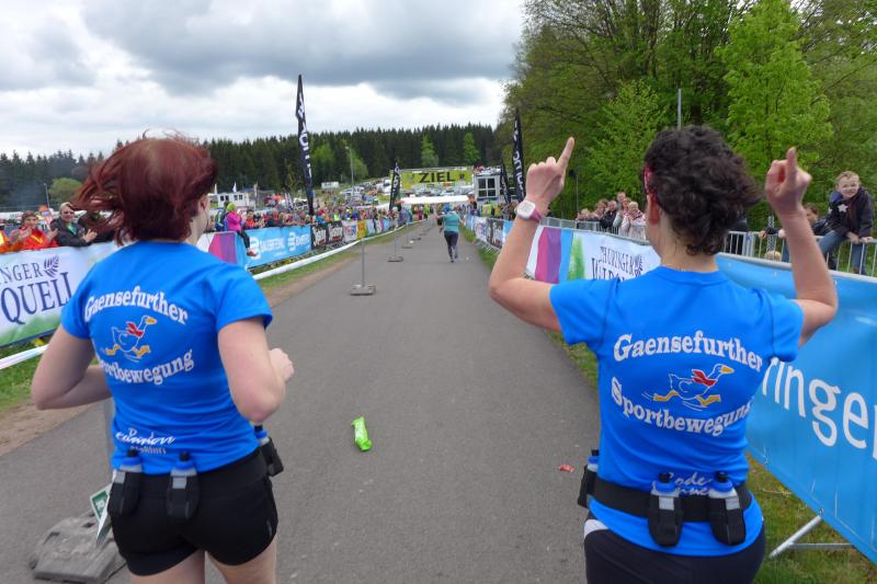 Mit dem Großen Beerberg erreichten die Unersättlichen nach 63 Kilometern den höchsten Streckenpunkt. Von nun an ging es größtenteils bergab, wofür sich der Körper aber auch nicht mehr begeistern konnte. Die Freude und Erleichterung bei den mitgereisten Gefährten war riesengroß, als auch das Trio nach fast zehn Stunden im Freudentaumel auf das schönste Ziel der Welt zulief. Eine Vielzahl von Glückstränen, ganz offensichtlich oder ganz geheim, werden an diesem Tag geflossen sein.