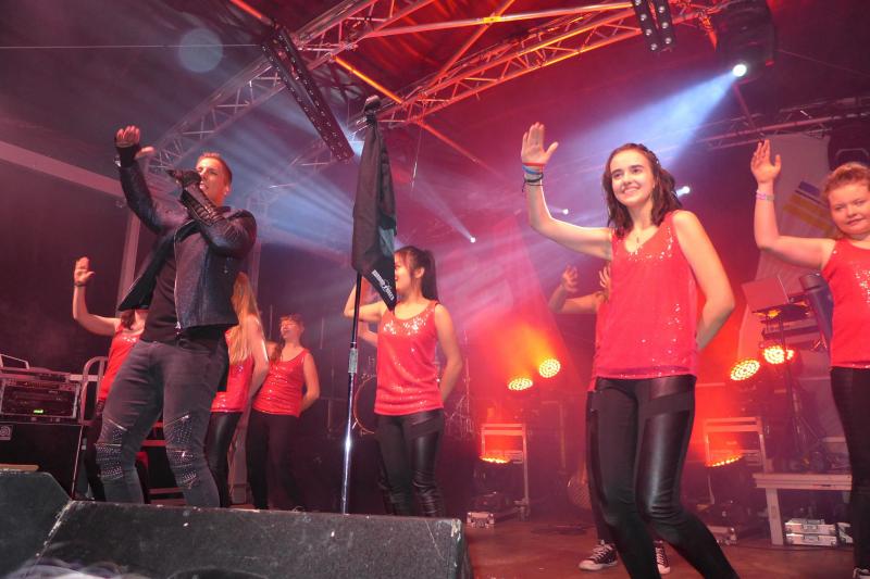 Ein farbenprächtiges Feuerwerk, untermalt mit passender Musik aus Film und Fernsehen, vom Guten- Abend-Gruß des Sandmännchens bis zu Hits von Metallica, brannten die Pyrotechniker aus Eibenstock wieder ab – und ernteten begeisterten Applaus von den Zuschauern am Stadtsee. Die Feuershow Robaria aus Thüringen faszinierte sowohl mit Elementen des Feuerspuckens, als auch mit Feuerkanonen. Zudem stimmte sie mit einem kleinen Feuerwerk auf den Höhepunkt des Abends am Stadtsee ein. Und die Schlagerfans ließen sich gern von Norman Langen in Partystimmung bringen. Die Dance Factory Egeln freute sich einmal mehr, zusammen mit einem Stargast auf der Bühne tanzen zu dürfen. Fotos: Jens-Uwe Börner