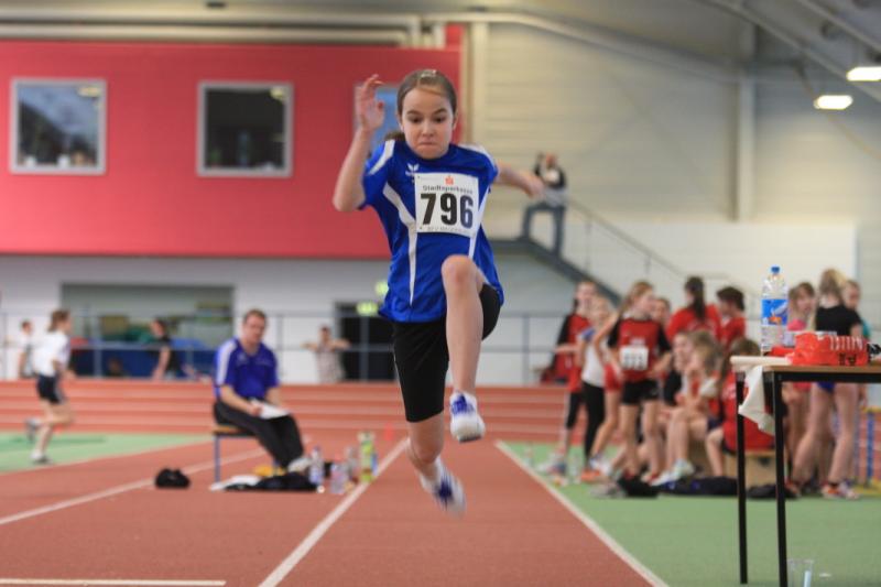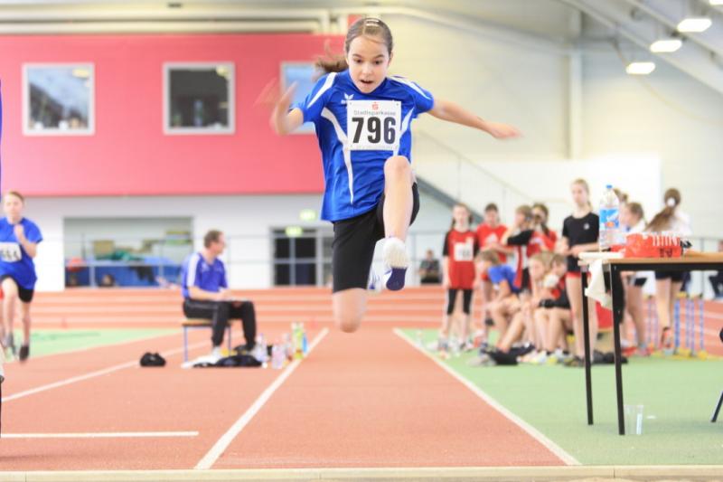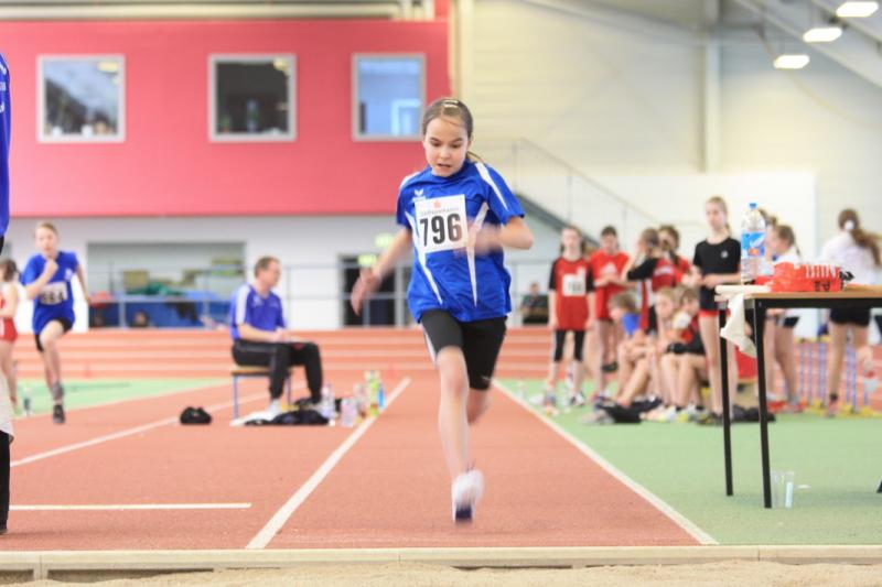 Sonnabend ging nur Nele in der Altersklasse 9 ( Ak ) im Dreikampf ( 50 Meter, 400 Meter, Weitsprung ) an den Start. " Sie war gut, außer im Weitsprung, da hat sie ein bisschen geschwächelt ", sagte Rösler. Die 50 Meter legte sie in 9, 17 Sekunden zurück. In 98, 09 Sekunden überquerte Nele die Ziellinie über die 400 Meter. Im Weitsprung leistete sie sich gleich zu Beginn zwei Fehlversuche. " Daher hat sie im dritten nur einen Sicherheitssprung gemacht. " Mit 717 Punkten erreichte sie in einem sehr großen Teilnehmerfeld den 38. Platz.