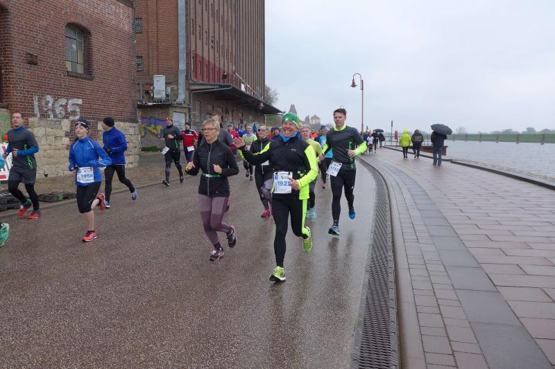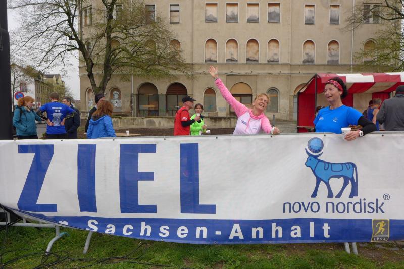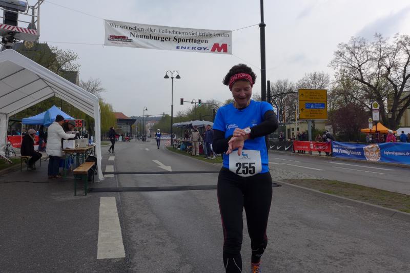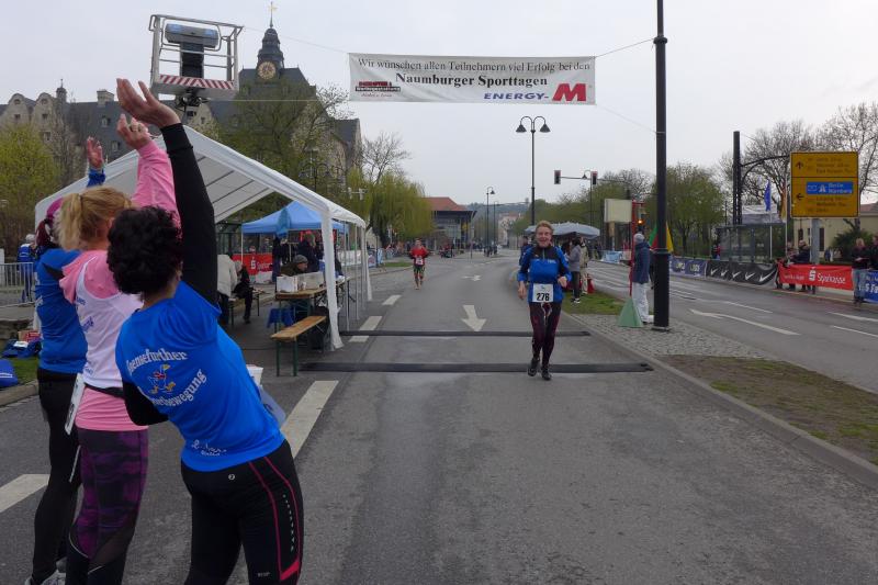 Beim City-Lauf Naumburg war wirklich die Creme de la Creme der Laufelite vertreten, denn dieser Wettkampf wurde zugleich als Landesmeisterschaft im Straßenlauf und als Deutsche Gehermeisterschaft ausgetragen. Nachdem die Geher vormittags noch im Schneegestöber unterwegs waren, hatte sich die Wetterlage zum Zehn-Kilometer-Start der Gaensefurther etwas entspannt. Der Nieselregen und die kühlen Temperaturen kamen den schnellen Sprints auf der Straße sehr entgegen. Nun mussten genau zehn Runden zurückgelegt werden. Mit den Meisterschaften hatten die Gaensefurther nichts zu tun, denn nur Startpassinhaber gingen in diese Wertung ein. Der Kreisverkehr am Marienring war gut zu laufen und den Konkurrenten konnte man prima in die Augen sehen. Dagegen war die spitze 360-Grad-Wende am Theaterplatz nach weiteren 500 Metern eine echte Herausforderung. Der Asphalt war rutschig und nass, so dass das Lauftempo an dieser Passage drastisch reduziert werden musste. Und wieder anlaufen, vorbei am Sprecher und den zahlreichen Helfern die die Runden zählten, bevor der nächste Kilometer angegangen wurde. Ein guter Testlauf für die sechs teilnehmenden Bode-Runners, die sich im starken Feld der Profiläufer nicht lumpen ließen. Nur aus dem Ziel, ein paar Körner für den Wettkampf am nächsten Tag aufzuheben, wurde leider nichts. Zu groß war der Reiz alles zu geben, so dass die Runners am Ende doch wieder schweißgebadet im Ziel landeten. Der guten Stimmung tat dies kein Abbruch, denn der Moderator und DJ hatte für jeden Finisher neben treffenden Sprüchen meist noch ein musikalisches Intermezzo auf Lager. Als Renate Liedtke dann mit dem Refrain „Volle Granate, Renate, Renate, Renate, Renate“ empfangen wurde, war das schon wie eine kleine Siegerehrung. Diese feierte sie im Anschluss, ebenso wie Kirsten Geist, auf Platz eins in ihrer Altersklasse.