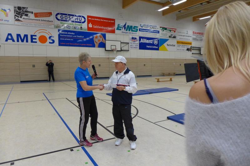 Adi selbst macht noch zwei- bis dreimal die Woche Sport. Fährt Fahrrad und macht Sport auf dem Stepper. Das macht ihn zu einen der fittesten 82-Jährigen weit und breit, der noch immer zahlreiche Termine wahrnimmt. „Das ist wie vor 40 Jahren. Der gleiche Einmarsch.“ Auch Ingo Kurze, Schulleiter der Grundschule Nord, muss lachen. Auch ohne Täve Schur, der aus privaten Gründen absagen musste, machte Adi in seinem Trainingsanzug eine gute Figur.