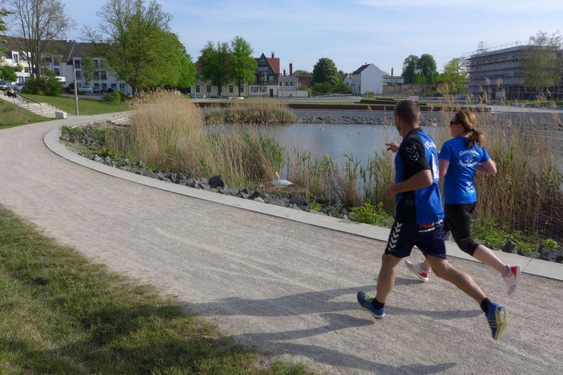 „Ein Signal geben“, wollte mit seiner Teilnahme am Erinnerungslauf auch der Staßfurter Oberbürgermeister. Mit Stadtwerke-Geschäftsführer Eugen Keller an der Seite umrundete Sven Wagner in großem Bogen den Stadtsee. Im September wolle er die zehn Kilometer-Distanz in Angriff nehmen, kündigte der OB an. Mit „Staßfurt bewegt sich mit Augenmaß und Abstand“ will Wagner auch den Optimismus weitergeben, den er zuvor bei Gewerbetreibenden in der Steinstraße vernommen habe. Das Leben gehe langsam wieder in Normalität über. Die ersten Sportvereine durften in der vergangenen Woche bereits wieder „kontaktfrei im Freien“ trainieren. ..