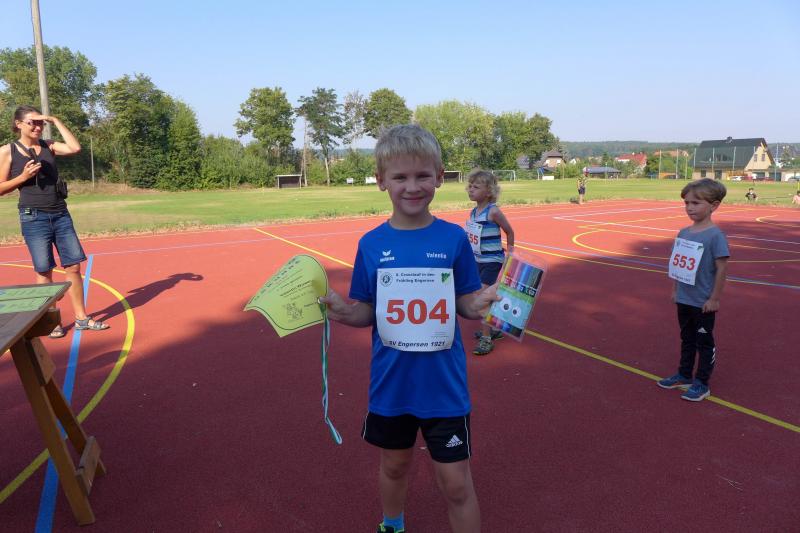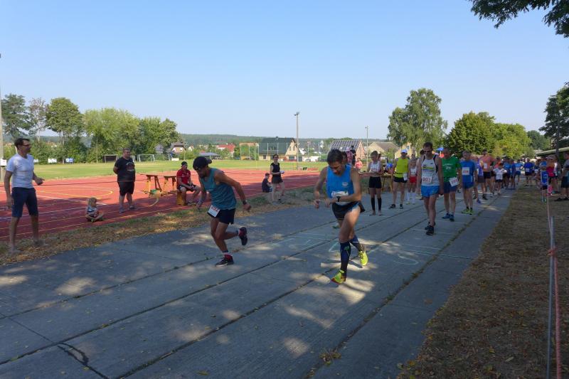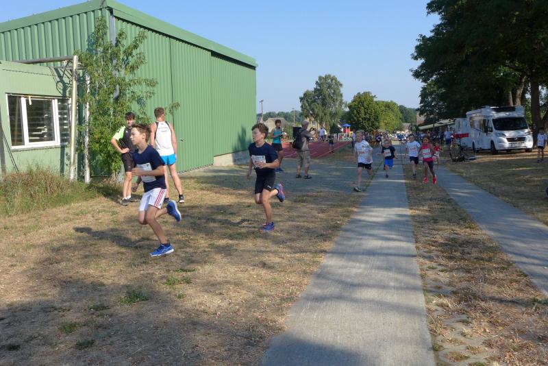 Bei seiner Ansprache musste auch Christian Jung schmunzeln, denn dem Motto „Crosslauf in den Frühling“ war man trotz sommerlicher Temperaturen treu geblieben. Besser spät als nie, honorierten die Läufer den Einsatz des Veranstalters, liegt der letzte Start in Demker nun fast ein halbes Jahr zurück. Während sich der 400-Meter-Start der Bambinis mit einer Handvoll Teilnehmer noch recht übersichtlich gestaltete, kam der Kampfrichter beim 1-Kilometer-Rennen schon leicht in Erklärungsnot. Die Startaufstellung funktionierte gut, doch nach dem Startkommando gab es kein Halten mehr, schließlich wollte keiner der Letzte sein. Aber schnell zog sich das Läuferfeld wieder auseinander, denn eine Anhöhe ließ die Waden brennen und gestaltete das Rennen sehr anspruchsvoll.