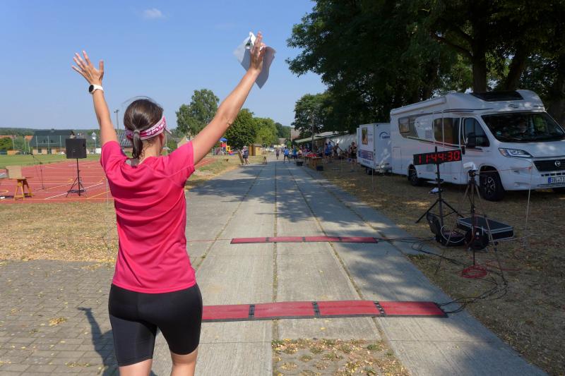 Janine Wuwer überzeugte im vereinsinternen Duell mit der schnellsten Zeit und rettete ihren dritten Platz glücklich über die Ziellinie. Auch alle weiteren Bode-Runners-Damen schnappten sich einen imaginären Podestplatz. Wer von den Zwölf-Kilometer-Läufern nicht am Getränkestand anhielt um die Wasserreserven aufzufüllen, nahm den Schwung mit in die zweite Runde. Nur drei Damen waren auf dem langen Kanten mit von der Partie – unter ihnen auch Bode-Runner Kirsten Geist. Gespannt verfolgten die Wartenden die nächsten Zieleinläufe und tatsächlich, Geist lief als erste Frau in der Gesamtwertung ein! Die Freude war riesig und musste umso mehr in Zaum gehalten werden. So nahm „frau“ die bereitgestellte Urkunde und Medaille an sich und statt Händeschütteln und Umarmungen, schenkte sie der Kamera ihr schönstes Lächeln.