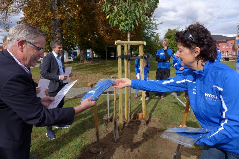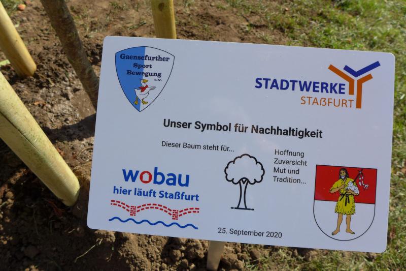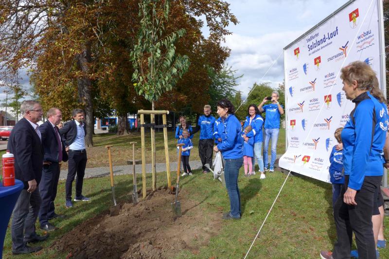 Bereits Ende Juni wurde bekanntgegeben, dass auch der Ausweichtermin für den 3. Staßfurter Salzland-Lauf am 25. September 2020 nicht stattfinden wird. Stattdessen passte nun die geplante Baumpflanzaktion am Stadtsee perfekt in die Europäische Nachhaltigkeitswoche der Vereinten Nationen. Über das Portal #tatenfuermorgen setzte die Laufgruppe der Gaensefurther Sportbewegung zusammen mit ihren Unterstützern das Projekt „KRAFT PFLANZEN - LEBEN ATMEN“ in die Tat um. „Unser Baum für den nötigen langen Atem und die Hoffnung, im nächsten Jahr wieder den Staßfurter Salzland-Lauf starten zu können!“, so die Organisatoren. Zum Nachhaltigkeitsziel waren sich alle einig, denn Bäume binden das schädliche CO2 und liefern uns den lebensnotwendigen Sauerstoff. Letzteres nahmen die Bode-Runners zum Anlass, Oberbürgermeister Sven Wagner, Ralf Klar und Eugen Keller als Geschäftsführer der Wobau und Stadtwerke, ein druckfrisches Gaensefurther Laufshirt zu überreichen. Damit ausgestattet und als Ehrenmitglieder des Vereins aufgenommen, sind alle drei eingeladen, eine Laufstrecke zum 3. Staßfurter Salzland-Lauf persönlich anzugehen. Ob als Walker oder Läufer auf der 1,5 Kilometer langen Strecke, den sechs oder sogar zehn Kilometern ist dabei vollkommen egal, denn den Bode-Runners ist es wichtig, den Laufspaß an der frischen Luft zu vermitteln, fit für den Alltag zu werden und vor allem, Staßfurt zu bewegen - 28. Mai, bist auch du dann mit dabei?