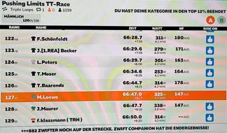 Er beendete gerade sein virtuelles Radrennen mit mehreren Hundert Teilnehmern unter den besten 12%.