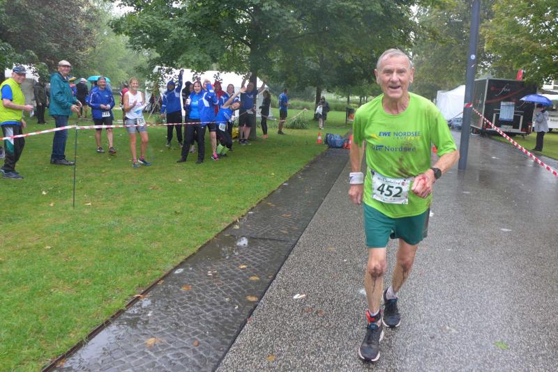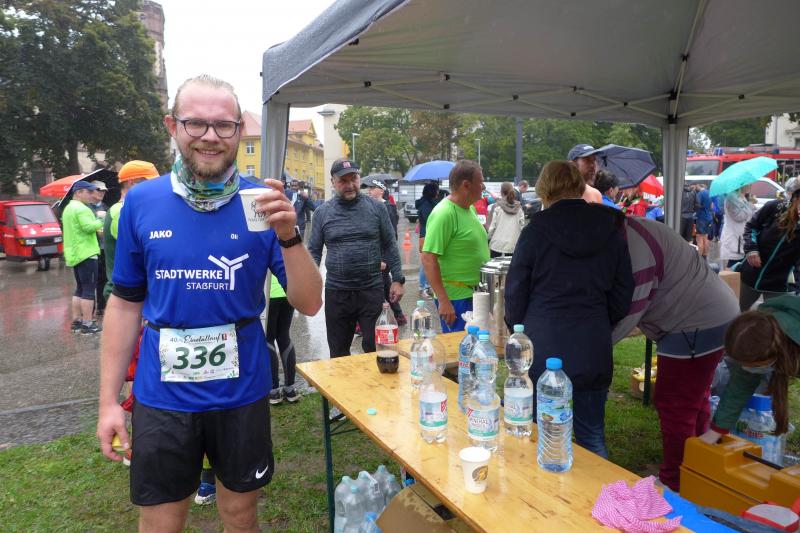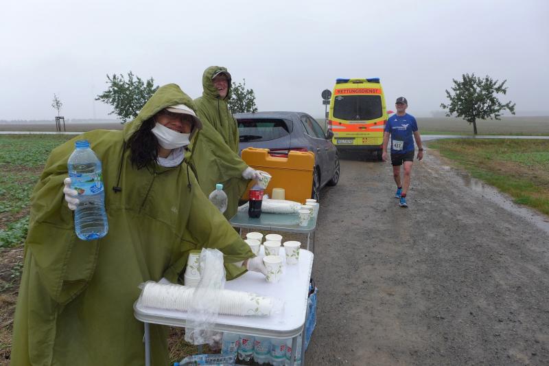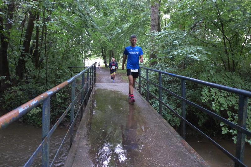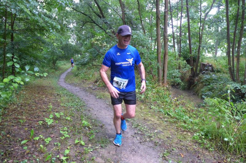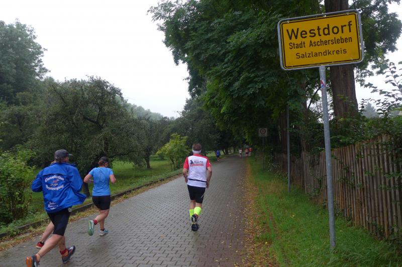Die LSG Ascania schaffte mit ihrem neuen Start- und Zielbereich an der Herrenbreite eine besondere Atmosphäre zur 40. Jubiläumsauflage und bei der Größe der Parkanlage, war das pandemiebedingte Abstandhalten auch kein Problem. Nur den anhaltenden Regen hätten sich eine Woche zuvor wohl eher die Veranstalter der Genthiner Matschwolke gewünscht. Aber bekanntlich kommen ja nur die Harten in den Garten und so pfiff Paparazzi Börner seine Bodis im feinsten Nieselregen zur Fotoaufstellung vor dem Startbogen zusammen. „Leute, die Matten sind scharf!“, hallte es aus dem Messwagen der Zeiterfassung. Wie ein aufgescheuchter Hühnerhaufen sortierten sich die Lauffreunde entfernt der verlegten Messschleife neu, denn ein Kontakt hätte die Ergebnislisten der bereits gestarteten Walker arg durcheinander bringen können. Schnell noch ein Geburtstagsständchen für den Jürgen, der sich sehr über die vorgezogenen Starts und die damit näher rückende Kaffeerunde freute. Nahe am Ehekrach schrammte ein Bode-Runner-Pärchen vorbei, die es gerade noch schafften ihre Startunterlagen abzuholen: „Du musst auf die Laufstrecke!“, schickte sie den Gatten los, der nun zwölf Kilometer vor sich hatte, um das angestaute Adrenalin abzulaufen. Bei all der Aufregung geriet fast der Start von Debütantin Anke Delius ins Hintertreffen. Wie ein Routinier reihte sie sich aber in die lange Startaufstellung ein und zog ihre sieben Kilometer ruhig und ohne Gehpausen durch. Das kontinuierliche Training mit der Laufgruppe zeigte erste Erfolge und Delius lief nicht ohne Stolz über die Ziellinie. Nach langer Verletzungspause und mit etlichen Gehpausen über diese Distanz, war Sabine Börner wieder mit von der Partie. Einzig allein der dadurch errungene Mannschaftspunkt war das Ziel. Doch das gute Mannschaftsgefühl und die Tatsache, dass es langsam wieder aufwärts geht, waren allemal Lohn für die Quälerei. In Bestform und als schnellste Gaensefurtherin auf der Sieben-Kilometer-Distanz unterwegs, spulte Janine Wuwer ihr Rennen ab. „Das ist mein Wetter!“, freute sich die Sportlerin dann auch noch über ihren ersten Platz in der Altersklasse W40. Als „langer Kanten“ musste beim Jubiläumslauf die 18,5 Kilometer lange Strecke reichen. Führte 2019 der 25-Kilometer-Kurs noch über die Burg Arnstein, ging es diesmal schon kurz vor Welbsleben zurück, oft am Flüsschen Eine entlang, direkt wieder in das Zentrum von Aschersleben. Okay, die Strecke war kürzer aber dennoch sehr anspruchsvoll. So berichteten einige Finisher, dass sie auf Grund der Nässe die Wegmarkierungen nicht erkannten und dadurch einige Kilometer mehr zusammen kamen. Die aufgeweichten Sommerwege sorgten indes für abenteuerliche Rutschpassagen. Umso intensiver waren die Erfolgserlebnisse und die Streckenberichte dann im Ziel.