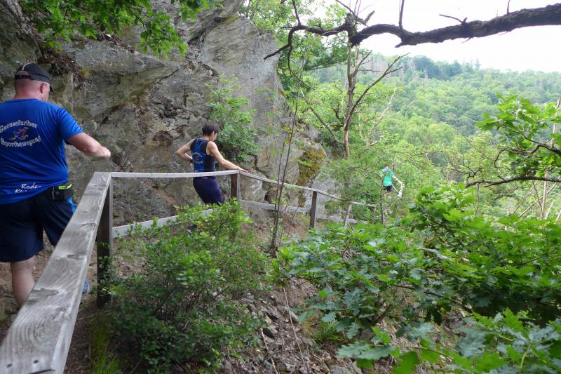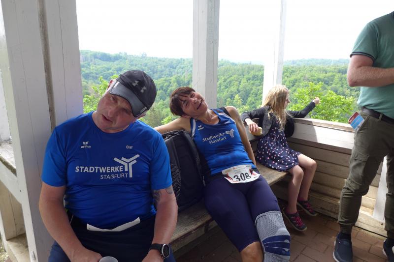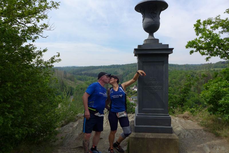 In Harzgerode lud am Pfingstsonntag der WSV zur 41. Auflage des Klippenlaufs ein. Und so wie der Name es verspricht, ging es auf den Cross-Strecken Klippe auf und Klippe ab. „Lange genug habe ich mich jetzt auskuriert!“, so Nancy Bothe nach wochenlanger Laufpause. Langsam und bedacht, aber ausdauernd wollte sie die 15-Kilometer-Distanz angehen. Ehemann Olaf, Jens-Uwe Börner und nicht zuletzt ihre bequeme Yogahose, sollten sie ab und zu an diese Vorgabe erinnern. Doch weit gefehlt, hatte sie eher den Eindruck, irgendwie immer auf ihre Männer warten zu müssen. Unversehrt und voller glücklicher Endorphine finishte das Trio die Zielline in Harzgerode. Von diesen Glückshormonen konnten die Starter über die neu aufgelegte Strecke der Halbmarathondistanz nichts aufbauen. Vom Streckenposten falsch geleitet, hatten die meisten Teilnehmer am Ende mehr als 21 Kilometer absolviert, was den Veranstalter dazu bewog, eine Sonderwertung für die Irrläufer vorzunehmen. Für Sandra Homann sprangen dabei nicht nur eine Medaille und eine Urkunde heraus, alle Erstplatzierten durften einen Pokal mit nach Hause nehmen. Zudem zauberte die Aussicht auf einen kostenfreien Startplatz im nächsten Jahr, dann spätestens wieder mild gestimmte Gesichter bei den Irrläufern. Auch auf der Fünf-Kilometer-Distanz waren einige Höhenmeter zu absolvieren, was Sabine Börner im lockeren Laufschritt gut gelang.