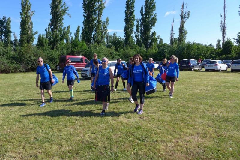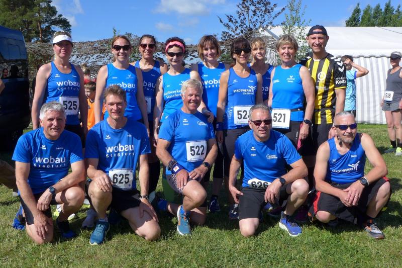 Doch keine Gnade für die Wade, rief die SFG Nellschütz am Pfingstmontag zum 20. Gerstewitzer Mühlentaglauf auf. Hier sollte nochmal der Mannschaftsgedanke motivieren, ging es doch im Rahmen des Landescups nicht nur um wichtige Wertungspunkte, sondern war für die stärkste Truppe auch ein Fass Bier ausgeschrieben. Immerhin 13 Bode-Runners nahmen die weite Anreise nach Nellschütz auf sich. „Na die 13 hat uns schon beim Salzland-Lauf Glück gebracht!“, erinnerten sich die Bode-Runners an die Diskussion über eine Veranstaltung an einem Freitag dem 13. Doch schon bei Abholung der Startunterlagen wurde deutlich, dass es eine ganz knappe Sache mit den antretenden Füchsen aus Hassenhausen werden würde. Die Auflösung blieb bis zum Schluss spannend, denn zuerst galt alle Kraft den Laufstrecken. Ganz Nellschütz war an der Strecke um die Läufer anzufeuern und mit lautem Kirchturmgeläut wurde dem benachbarten Gerstewitz signalisiert: „Die Läufer sind jetzt los!“ Mitten im Getümmel auch Neuzugang Conny Günther, die sich die Sechs-Kilometer-Distanz als erste Wettkampfstrecke mit den Bode-Runners ausgesucht hatte. „So aufgewühlt hab ich dich nie gesehen!“, sang man noch den Klaus-Lage-Song mit ihr, um die Aufregung ein wenig zu nehmen. Ganz tapfer absolvierte die Debütantin Schritt für Schritt, und spätestens nach der Umrundung der Gerstewitzer Mühle sah sie, wie viele Läufer ihr noch entgegen kamen. Nun gab es bis in das Ziel sogar frischen Rückenwind. Die lustigen Nellschützer hatten während dessen das eine oder andere Bierchen verdrückt und empfingen ihre Mühlentagläufer wieder mit motivierenden Sprüchen für den Endspurt. Das hat Eindruck hinterlassen, immerhin durften sich am Ende von den 13 angereisten Staßfurtern acht Altersklassengewinner ein frisch gebackenes Mühlenbrot vom Müllermeister abholen. Nun wurde es ganz still im großen Festzelt, denn die stärkste Mannschaft für das Bierfass sollte ermittelt werden! Was für eine Freude, als feststand, dass sich die weite Anreise für die Gaensefurther Sportbewegung auch in diesem Fall gelohnt haben sollte! Das Fass kommt genau richtig für die Abende des geplanten Trainingslagers und die 20-jährige Jubiläumsfeier der Laufgruppe Bode-Runners…