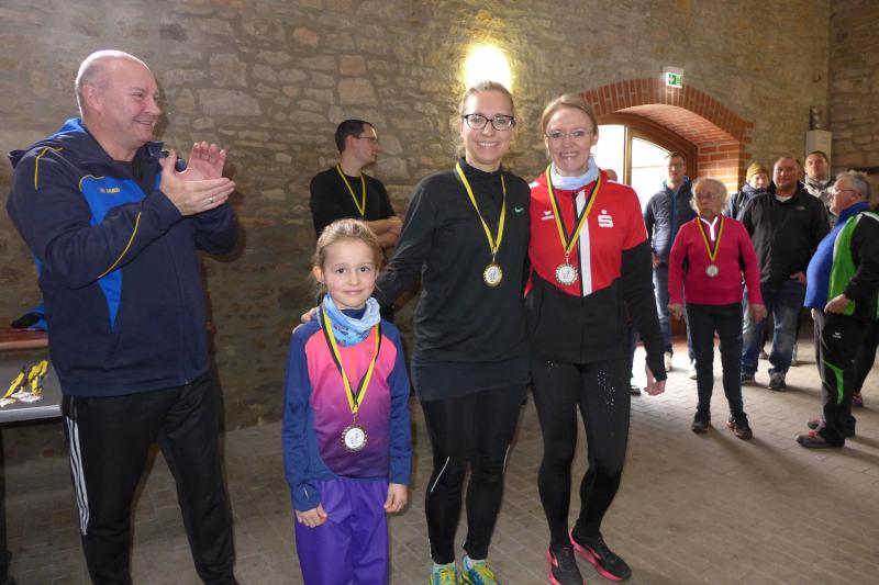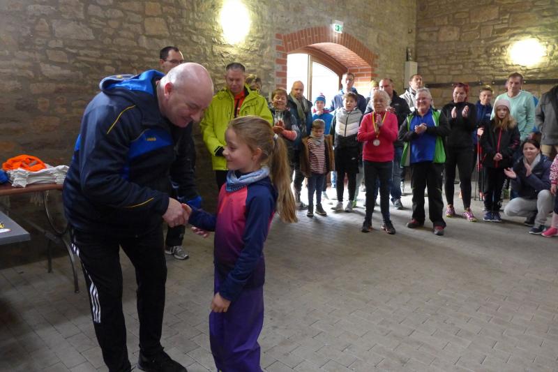 Die Siebenjährige blieb dran und sicherte sich am Ende ihre Bronzemedaille für die Gesamtwertung bei den Frauen. In der Kinderwertung freute sich Valentin Wuwer über den dritten Platz auf dem Ein-Kilometer-Kurs. Da nur wenige Teilnehmer am Start waren, durften sich alle Kinder über eine Medaille freuen. Mit der Wertung der drei schnellsten Frauen und Männer war die Siegerehrung dann auch schon erledigt und man ging zum gemütlichen Teil über. Franzelius war über die Resonanz sehr zufrieden, mit 76 Volksläufern hätte er nicht gerechnet…