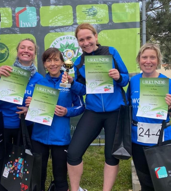 Vor dem zurückliegenden langen Wochenende konnten die Bode-Runners der Gaensefurther Sportbewegung bereits am Freitagnachmittag wieder ihrem Hobby frönen und auf dem Sportplatz des Polizei-Sportvereins Bernburg die Laufschuhe schnüren. Der gastgebende Verein hatte zum vierten Stundenlauf auf die weiche Tartanbahn eingeladen und 25 Mannschaften folgten dieser Einladung auch. Entgegen der Vorjahre waren bei der vierten Auflage neben Firmen und Vereine auch erfreulich viele Kinderstaffeln mit am Start. Die Gaensefurther stellten eine Damen- und zwei Männerstaffeln, wobei die letztere auf Grund eines Ausfalls beinahe nicht startberechtigt war. Doch Valentin Wuwer sprang ein und komplettierte als vierter "Mann" das Team wieder. Damit der Staffelwechsel auch flutschte, wurde die Technik im heimatlichen Stadion der Einheit vorher fleißig geübt. Dabei waren die Staffelstäbe aus den Zeiten, als es in Staßfurt noch einen Nikolauslauf gab. Damals flitzten die teilweise verkleideten Läufer um die Wette und gaben den Stab nach einer absolvierten Runde an den Laufpartner weiter. So ähnlich funktionierte es in Bernburg auch, nur bei deutlich angenehmeren Temperaturen und mit vier Teilnehmern pro Team. Die Regenerationszeit, bevor man wieder auf die Bahn musste, war in Bernburg also deutlich länger. Bis zum nächsten Einsatz hielt man sich am besten mit dem Anfeuern der Vereinskollegen warm. Der Damenstaffel gelang das besonders gut, denn bei der Platzierung konnte sie sich den dritten Platz sichern.