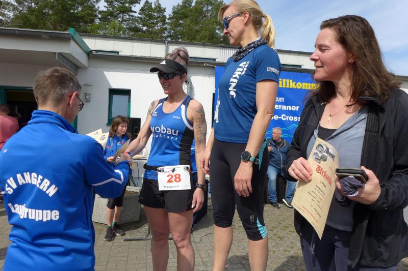 Zwei Tage später, beim Angeraner Krepe Crosslauf, war die Tragödie bereits vergessen und 19 Gaensefurther freuten sich auf den nächsten Run im Läufercup über 1,5 / 5,9 oder 10,7 Kilometer. Gerade vom Halbmarathon auf Hiddensee zurück, nutze auch Kirsten Geist den Cuplauf zum lockeren Auslaufen: "Fast wie an der Ostsee hier!", ließen doch die sandreichen Wege und die hohen Kiefern in der Ferne das Meer vermuten. Neuzugang Jens Kunkel testete die Strecke in der Walkingvariante und kam als Gesamtzweiter in das Ziel. Aber auch die Gaenseküken Emily und Lotta, Christa und Harald Fümel, Sandra Homann, Conny Günther, natürlich Kirsten Geist und ein taktisch gut gelaufener Stefan Sindermann sprangen als Platzierte erfreut auf das Podest.