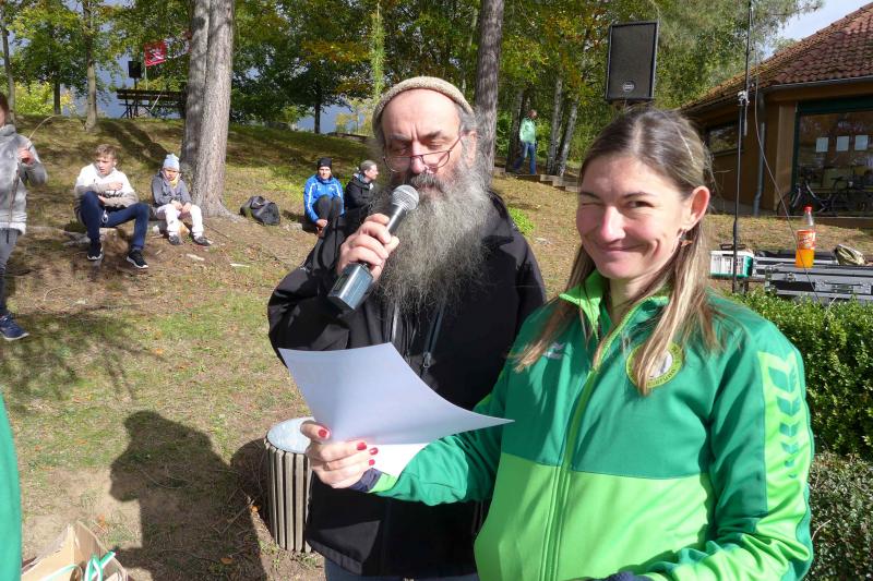 Naturlauf Nummer zwei hatten Gaensefurther dann auch am Folgetag, beim zehnten Friedrichsbrunner Herbstcrosslauf. Niemand hat mit ihm gerechnet, Stampnik war wieder da! Keine 24 Stunden vorher über den Brocken einen Marathon gefinisht, war er selbst nicht davon überzeugt, über die gemeldeten fünf Kilometer wirklich in das Ziel zu kommen. Nachdem für Jens-Uwe und Sabine Börner der Startschuss über zwei Runden von jeweils fünf Kilometern erfolgt war, begab sich Stampnik zusammen mit Nicole und Jens Schlottag auf die Verfolgungsjagt ihrer Vereinskollegen. Bei eisig frischen vier Grad Celsius ging es vom Kurpark in die weite Flur, über herrlich saftige Wiesen, dichte Mischwälder und so einige Höhenmeter. Börners waren gerade dabei die letzte krasse Steigung zu bezwingen, als die ersten Sprinter von hinten nahten. Als Dritter grüßte der Marathonmann vom Vortag, überholte das Ehepaar schwer atmend und hielt seine Platzierung bis in das nahe Ziel. Gratulation an Stampnik beim Durchlauf, mussten Börners ja erst noch ihre zweite Runde absolvieren.