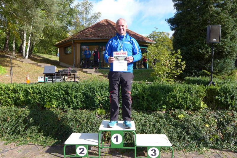 Bald folgten Jens und Nicole Schlottag, letztere als glückliche, zweite Frau Gesamt- und Altersklassensiegerin über die fünf Kilometerdistanz. Bis an die Ohren strahlte auch Herr Schlottag über seinen ersten Platz in der Wertungsklasse 50 bis 55 Jahre auf dem Podest: „Wie früher!“, freute er sich über seine Ehrung.