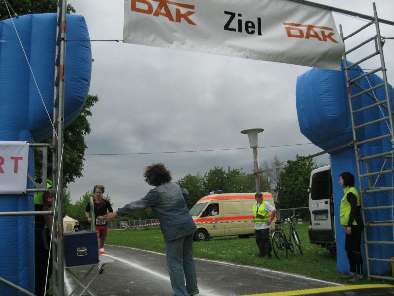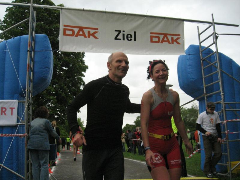 Für den ersten Platz in seiner Altersklasse reichte die Zeit für Florian Börner (m19). Jens-Uwe Börner(m45) folgte nach weiteren sechs Minuten und belegte in seiner Altersklasse Platz 17. Auch bei ihm wie bei der letzten des Teams, Annegret Wille, war das Schwimmen das große Handicap. Jens-Uwe hielt wegen Kälteschocks schon mitten auf der 500m Distanz nach dem Rettungsschwimmer Ausschau, die er aber zum Glück nicht in Anspruch nahm. Annegret hätte einen Helfer benötigt, um aus dem nassen Gefilde zu kommen, denn mit Wadenkrämpfen ging kurz vor dem Strand nur noch ein Paddeln in Rückenlage. Irgendwann ging es dann zum Glück doch. Allerdings waren das Radfahren und das abschließende Laufen nicht mehr mit voller Kraft möglich. Platz vier hinter Sabine war dann doch noch ein Trost fürs Durchhalten.