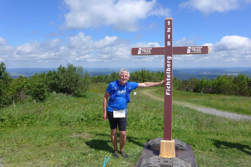 Geringfügig länger waren dagegen die Teilnehmer des Sachsen-Trails im erzgebirgischen Breitenbrunn unterwegs. Ein ganzes Wochenende konnten sich die fünf Bode-Runners der Gaensefurther Sportbewegung dort beim „Trailrunning“ austoben. Dabei waren die angebotenen Strecken mit etlichen Höhenmetern gespickt. Über den Erzgebirgskamm erstreckten sich wundervolle Laufkulissen. Schmale Pfade, steile, langgezogene An- und Abstiege galt es zu erobern. Beim UltraTrail über wahnsinnige 75,5 Kilometer hatte Jens-Uwe Börner ganze 2.120 Höhenmeter vor sich. In 13 Stunden musste die Distanz absolviert sein, so das vorgegebene Zeitlimit des Veranstalters. Vor dem frühen Start um sieben Uhr wurde die Ausrüstung der Ultraläufer kontrolliert, denn die Mitnahme von mindestens einem Liter Getränke, Energieriegel oder Gel war verpflichtend. Sogar ein Trinkbecher und ein Handy mit Landkarte waren mitzuführen. Dazu trainierte Börner im Vorfeld mit einer eng anliegenden Laufweste, die Getränkefächer und ausreichend Stauraum hatte. „Da muss ja auch meine Leselupe mit!“, schlussfolgerte der Ultraläufer, wäre die Bedienung des Handys doch sonst unmöglich gewesen. Der Wahnsinnige war schon lange unterwegs, als auch die Vereinsfreunde über die halbe Ultradistanz, 20 oder 11,5 Kilometer auf ihre Strecken geschickt wurden. Eins hatten alle Trails gemeinsam: den Zieleinlauf! Die letzten 3,5 Kilometer zum Sportpark Rabenberg ging es brachial berghoch. „Lasst den Brustkorb krächzen, bevor ihr keuchend und fluchend durchs Ziel krabbelt!“, feuerte der Moderator die Finisher auf ihren letzten Metern nochmal an: „Bringt die Keulen so richtig zum Glühen!“ Lange wartete man im Ziel auf Börner. Eine dreiviertel Stunde vor Zielschluss lief der Ultraläufer dann auf dem Plateau des Rabenbergs ein. Langsam, humpelnd und schwer atmend aber mit Tränen voller Glück in den Augen. Am letzten Renntag durfte Börner seine Wunden lecken und die Lauffreunde waren wieder gefordert. Da Detlef Schäfer und Olaf Bothe an allen drei Tagen eine Strecke absolvierten, gab es zur Siegerehrung einen ganz besonderen Holzpokal für die beiden Gaensefurther.