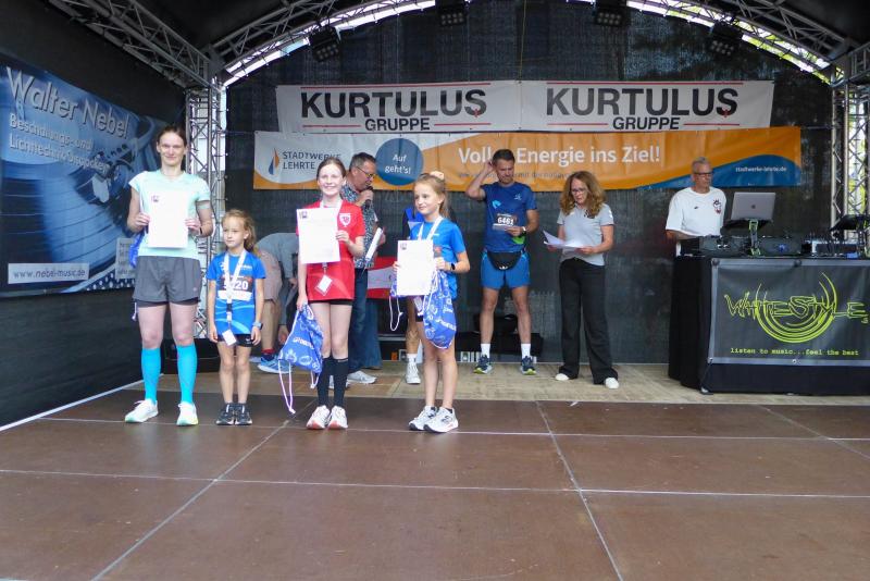 Erneut begann das zurückliegende Laufwochenende der Bode-Runners bereits am Freitag. In den frühen Nachmittagsstunden erfolgte die Anreise einer kleinen Abordnung in die Partnerstadt Lehrte, im Schlepptau ein ganzer Bus hoch motivierter Gymnasiasten aus Staßfurt. Ohne Umwege und Stau gelang die Abholung der vielen Startnummern, so dass die Starts der zwei und vier Kilometerstrecken entspannt erfolgen konnten. Wie hoch jedoch der Adrenalinspiegel an der Startlinie war, konnte den angespannten Gesichtern nur zu gut entnommen werden. Mit dem Knall der Startklappe ging es dann zuerst über eine Runde durch die Stadt. Emily Siebert von den Gaensefurthern hatte sich für die zwei Kilometer viel vorgenommen und von Anfang an das Spitzenfeld der Männer im Fokus. Mit dabei Henry Schmidt und Ben Heller vom Dr.-Frank-Gymnasium, die eine ordentliche Pace hinlegten. Schmidt konnte sich absetzen und einen dritten Platz im Gesamtklassement der Männer einfahren. Siebert fand in Christian Dösinger von Hannover 96 Triathlon ihren Pacemaker. Mit großem Abstand zur Zweitplatzierten erlief sich die zehnjährige den Gesamtsieg bei den Frauen. Als wären diese Zieleinläufe nicht Aufregung genug, spielte sich auf den letzten hundert Metern um Platz zwei und drei ein wahres Drama ab. Auf gleicher Höhe liefen Emilia Pausch vom TVE Sehnde, Janine Schroeder (ohne Verein) und die siebenjährige Lotta Siebert von der Gaensefurther Sportbewegung. Während sich Pausch mit zwei Sekunden Vorsprung den zweiten Platz sicherte, musste über Platz drei das Zielfoto entscheiden. Die kleine Lotta hatte das Nachsehen, durfte aber zur Siegerehrung mit auf die ganz große Bühne. Auch über vier und zehn Kilometer gingen Staßfurter Läufer an den Start. Natürlich wurden auch Grüße an den Bürgermeister Frank Prüße weitergegeben, welcher neben Staßfurt auch die Gäste aus der polnischen Partnerstadt Trzcianka an seiner Seite hatte. Ein Besuch am Stand der Stadtwerke Lehrte war ebenso Pflicht wie beim SV Lehrte vorbeizuschauen. Einladungen für den 8. Staßfurter Salzlandlauf, welcher für den 22. Mai 2026 vorbereitet wird, wurden herzlich erteilt. Das nach 2.271 Finishern jedoch zwei, fast drei Gesamtsiege mit nach Hause fahren durften, hat in Lehrte sicher Eindruck hinterlassen.