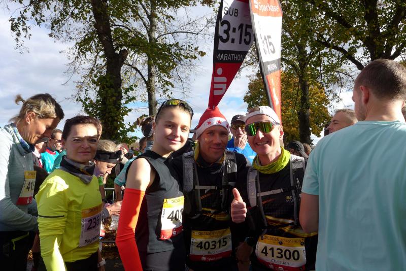 Das riesige Teilnehmerfeld der Halb- und Marathonläufer startete gemeinsam. Über 8.000 Aktive benötigten über eine viertel Stunde, bis auch der letzte die Startlinie überquert hatte. Nur sehr langsam entzerrte sich das Läuferfeld. Am Standort der abgerissenen Carolabrücke wunderte sich Jens-Uwe Börner über nichts: „Als wäre da nie eine Brücke gewesen!“, bog er mit dem Tross in Richtung Albertplatz ab. Er hatte seine Mühe den Gaensefurther Spitzenläufern für einen Schnappschuss zu folgen. Nachdem er Lina Epperlein und Jens Kunkel erfolgreich abgelichtet hatte, ließ er sich zurückfallen und lauerte, immer mit dem Finger am Auslöser, auf die Verfolger. Vergebens, war das Teilnehmerfeld einfach zu dicht und die Vereinskollegen nicht auszumachen. Vielleicht lag es aber auch an den Shirts, die die Bode-Runners in Dresden trugen. Einer der Hauptsponsoren dieser Jubiläums-Lauf-Veranstaltung hatte die Laufgruppe eingeladen. So mussten sie sich diesmal nicht um die Startanmeldungen kümmern und auch für einheitliche, aber ungewohnte Bekleidung, war gesorgt. Nach der pulsierenden Neustadt folgte bald der illuminierte Waldschlößchentunnel, die gleichnamige Brücke schloss sich an. Bei Kilometer zwölf war der Große Garten erreicht und nun wurde es mit Regen und stürmischen Böen richtig ungemütlich. Die letzten Kilometer führten an der Elbe zurück in die Altstadt, unter der Brühlschen Terrasse entlang, vorbei an der Semperoper bis hin zum Heinz-Steyer-Stadion. Das war gut gefüllt und bereitete seinen Finishern eine atemberaubende Atmosphäre. „Rekorde sind unter diesen Bedingungen nicht zu erwarten!“, so der Stadionsprecher. Trotzdem oder gerade deswegen, bebte die Tribüne beim Einlauf von Johannes Motschmann vom Marathon Team Berlin, der die 21,1 Kilometer nach nur 1:03:29 Stunden über die Ziellinie brachte. Von den Bode-Runners war Jens Kunkel der erste Läufer, der begrüßt wurde. Das gemeinsame Zielfoto erledigten Janine und Daniel Wuwer mit ihrem Handy, schließlich war Börner ja noch irgendwo auf der Strecke. Ihm sollte aber noch ein Schnappschuss gelingen, sauste doch kurz vor dem Stadion eine leichtfüßige Epperlein vorbei. Kalt und nassgeregnet konnte er der Marathonläuferin bis zum Zielbogen nicht folgen. Am Ende hatten beide eine Zielzeit von 3:09 Stunden, mit dem kleinen Unterschied, dass Epperlein die doppelte Distanz in den Beinen hatte: „Es lief gut und auch der Wind hat mich nicht wirklich gestört.“, freute sich die Athletin nach ihrem dritten Marathon über eine neue Bestzeit. Die Wetterkapriolen nahmen zu. Auf der Strecke verselbstständigten sich die leeren Trinkbecher und im Stadion verabschiedete sich ein ganzes Versorgungszelt. Und immer noch waren Läufer auf der Marathondistanz unterwegs, so auch Bode-Runner Alexander Topf. Nach dem Berlin- und dem Mitteldeutschen Marathon war Dresden ebenso sein dritter Lauf über 42,195 Kilometer in dieser Saison: „Das war mir einfach zu kalt. Bei Eisregen und Gegenwind ging ab Kilometer 35 nichts mehr!“ Umso mehr sind diese Laufleistungen anzuerkennen, die trotz dieser Wetterkapriolen in das Ziel gebracht wurden.