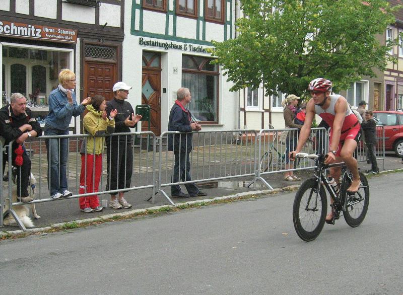 Beim Jedermann-Wettbewerb (750/29/5) gab nun auch die Vierte der Familie Börner ihren Triathloneinstand. Tina Börner, 21 Jahre, erreichte in 1:33:05 Stunden als Erste der AK 1 das Ziel. Mama Sabine wurde Zweite bei den Sen 1 in 1:23:40 Stunden. Immer besser in (Rad)Fahrt kommt Vater Jens-Uwe, der die Distanz in 1:17:36 Stunden und auf Rang acht in der Sen 2 bewältigte. Der Hecklinger Thomas Vetter, diesmal ausgestattet mit einem leichten Alurad, wurde in 1:19:04 Stunden Fünfter in der AK 4.