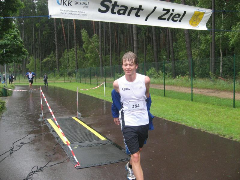 Im Feld der 7,2 Kilometerläufer trafen die Bode-Runners auf viele Eickendorfer Starter. Es reichte aber meist nur zu einem freundlichen „Hallo“, denn Matsch, Pfützen, Tannenzapfen und Wurzelwerk erforderten die ganze Aufmerksamkeit der Läufer. Bevor das Ziel erreicht wurde, goss es wieder aus allen Wolken. Davon bekam die Langdistanz dann noch ordentlich was ab. Kein Hindernis für Lutz Klauß, der sich von Wettkampf zu Wettkampf an Jens-Uwe Börner herantastet. „JUB, bald hab ich dich!“ neckte er im Ziel den Gejagten.