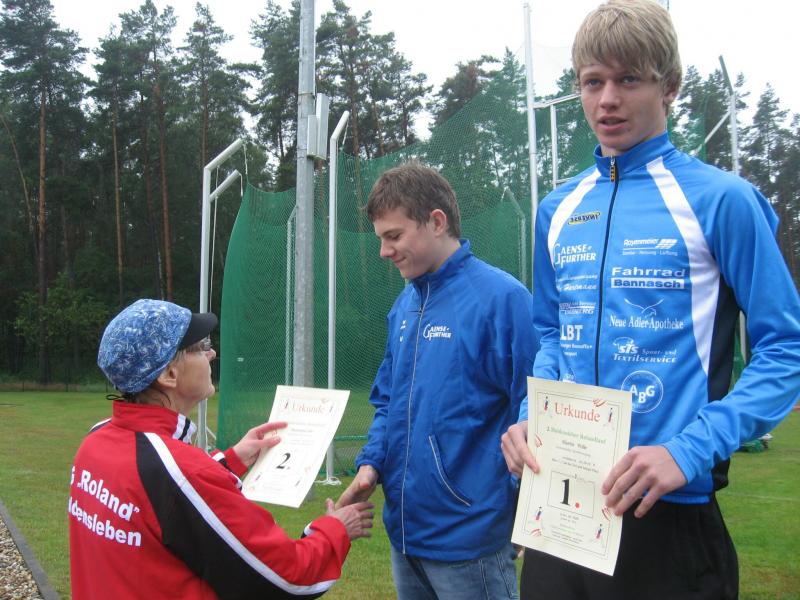 Der Rolandlauf in Haldensleben wurde das erste Mal als Wertungslauf im Gaensefurther Läufercup ausgetragen. Mit der schönen Anlage am Waldstadion bot der Veranstalter den Sportlern beste Bedingungen. Der Regen, welcher bereits am Vortag die Waldwege ordentlich aufgeweicht hatte, war eine nicht zu beeinflussende Größe. Und so nieselte es auch wieder am Start über die 2,3 Kilometer. Felix Göres vom cash`n fun Junior Team der Salzlandsparkasse verhalf die erfrischende Brise zum Sieg in seiner Altersklasse. Nur knapp verfehlte er den Gesamtsieg über diese Distanz. Gerade richtig warmgelaufen startete er nur ein paar Minuten später, außer Konkurrenz, auch im Hauptlauf über 13,2 Kilometer. Seine etwas älteren Sportfreunde mussten, um in die Wertung zu kommen, den langen Kanten in Angriff nehmen. Entsprechend ruhig wollte die Jugend diesen Lauf gestalten. Die Taktik erwies sich am Ende als richtig, hielten alle vier tapfer durch und belegten als jüngste Teilnehmer dieser Distanz erste und zweite Plätze.