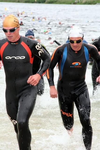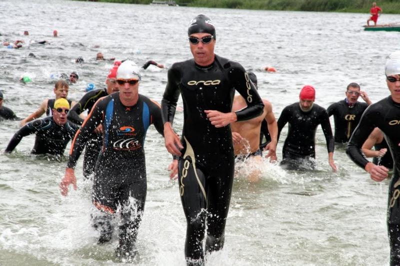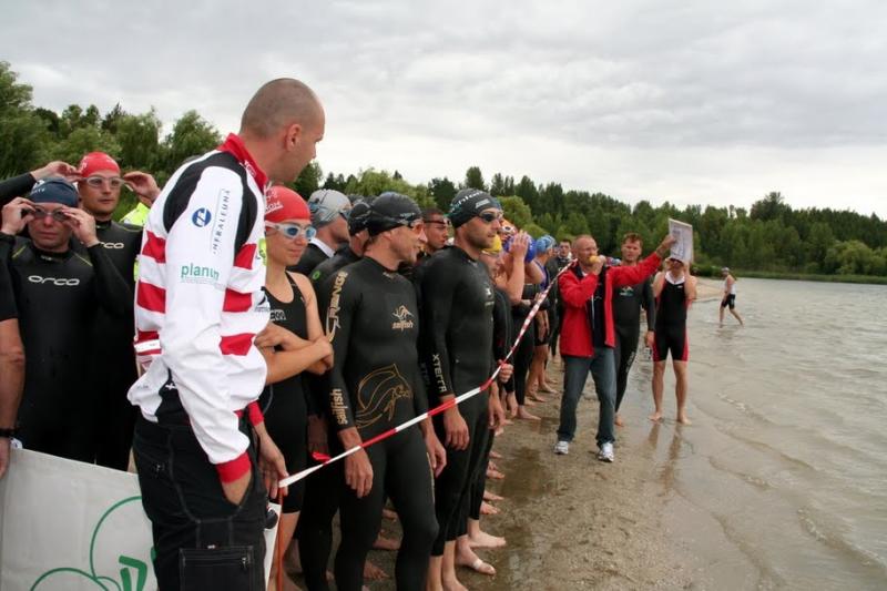 Die leichte Bewölkung und der böige Wind ließen auf gute Wettkampfergebnisse hoffen und so ging es 15 Minuten vor 11 Uhr vom Wechselgarten, der oberhalb des Hasse See liegt, hinunter zum Stand, wo pünktlich um 11 Uhr gestartet wurde. Es muss für die Zuschauer ein imposantes Schauspiel gewesen sein, als von 138 Athleten Arme und Beine das Wasser des Sees zu brodeln brachten, was die Athleten leider etwas anders sahen, denn hin und wieder von einer Hand oder auch schon gern einmal einem Fuß des Vorausschwimmenden getroffen zu werden erzeugt wenig Freude.
