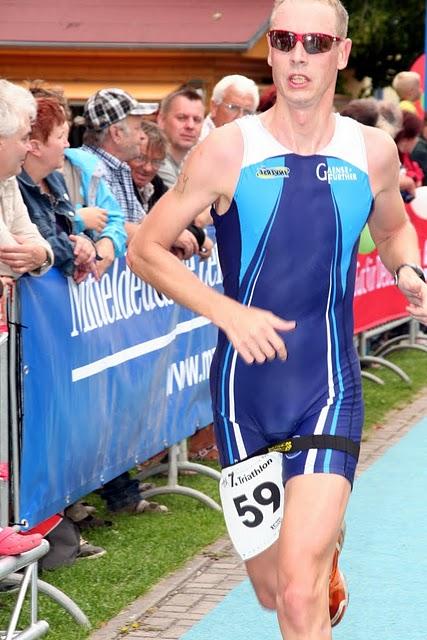 Und so ging es mehr oder weniger abgekämpft auf die durch den böigen Wind doch recht anspruchsvolle Radstrecke. Die verhieß dank neuen Fahrbahnbelages und langer Bergab-Passagen schnelle Radzeiten. So dass sich hier die Platzierungen im Gesamtklassement im Sekundetakt änderten. Und wie schon zu erwarten war, kam Torsten Blauwitz nach 49:07 min. dicht gefolgt von Daniel Ragoß 50:42 min ; Olaf Moch 54:23 min; Steffen Schöler 54:51 min. ; Martin Wille 57:15 min.; Florian Börner 1:00:11 Std. und Toralf Schmidtschneider 1:01:08 Std. wieder im Wechselgarten an. Hier hieß es nun auf zur letzten Disziplin, dem Laufen. Die abschließenden zwei Runden um den Hasse Seen (6 km) absolvierten die Gaensefurther ohne Probleme und sicherten sich teilweise sehr gute Endzeiten und Platzierungen.