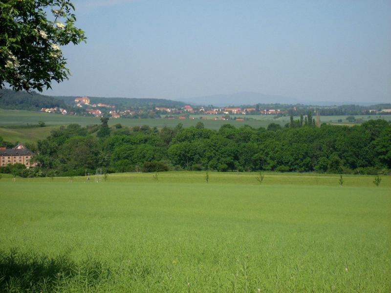 Jens-Uwe Börner, mit den 11-Kilometer-Läufern unterwegs, erspähte mit seinem Fotoapparat am Horizont den Brocken. Spätestens hier kam wohl der Entschluss mehr auf die Bildmotive als auf die Laufzeit zu achten. Die Läufer erreichten über den Friedrichshohenberg den höchsten Punkt der Strecke und bogen nun ebenfalls in Richtung Konradsburg ab. Während sich einige Walker und natürlich auch Herr Börner Zeit für eine kurze Besichtigung nahmen, eilten die Läufer durch den kleinen Burggarten wieder hinab nach Ermsleben.