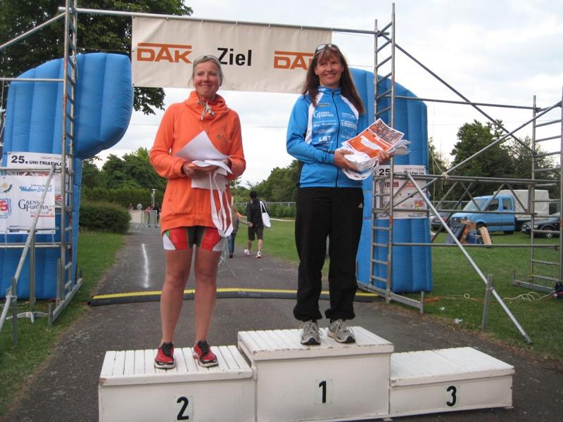 Annett Lampe(w40) und Annegret Wille (w45), die einzigen Damen im Team, schafften es unter die besten zehn Teilnehmerinnen und ließen auch mindestens die Hälfte der männlichen Triathleten hinter sich. In Ihren Altersklassen siegten sie. Beide glänzten mit sehr guten Schwimmzeiten über die 750m, jeweils unter 16 min und Annett überraschte mit einer super Laufzeit von 21:31min über die 5 Kilometer.