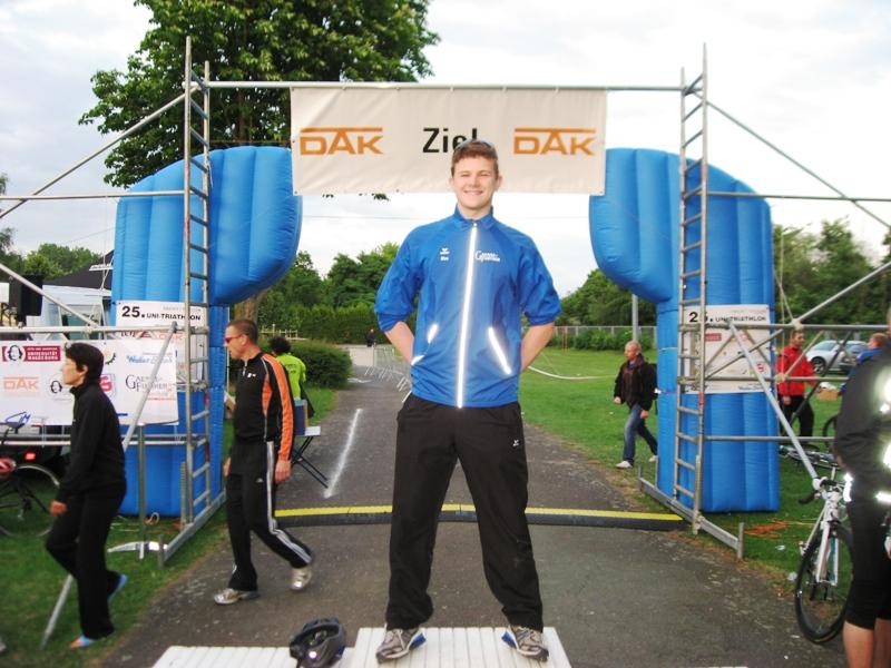 Maximilian Gäde (mJA) nutzte diese guten Bedingungen und gab sein Debüt beim Triathlonwettkampf. Seine Eindrücke stellte er so dar: „Ich fand diesen Triathlon überwältigend. Mir hat es wirklich sehr gefallen und ich glaube, dass ich eine neue Lieblingssportart gefunden habe. Was Besseres als drei verschiedene Sportarten bei einem Wettkampf zu absolvieren, gibt es nicht. Trotz vieler Vorbereitungen im Vorfeld des Wettkampfes war ich trotzdem sehr aufgeregt und vor allem nervös. Mir ging alles Mögliche durch den Kopf, besonders der Gedanke, wie die Wechsel zwischen den verschiedenen Disziplinen wohl laufen würden. Meine Devise daher: „just do it“. Als dann der Startschuss, gegen 18 Uhr fiel, ging alles ganz schnell und die Aufregung legte sich so rasch, wie sie gekommen war. Ich denke, mit meinem ersten Ergebnis (Platz 4 in der Altersklasse) kann ich ganz zufrieden sein. Darauf werde ich mich sicher nicht ausruhen, denn von nichts kommt nichts.“ Max’ Trainingseifer hat sich gelohnt. Glückwunsch von seinen Teamkollegen dazu.