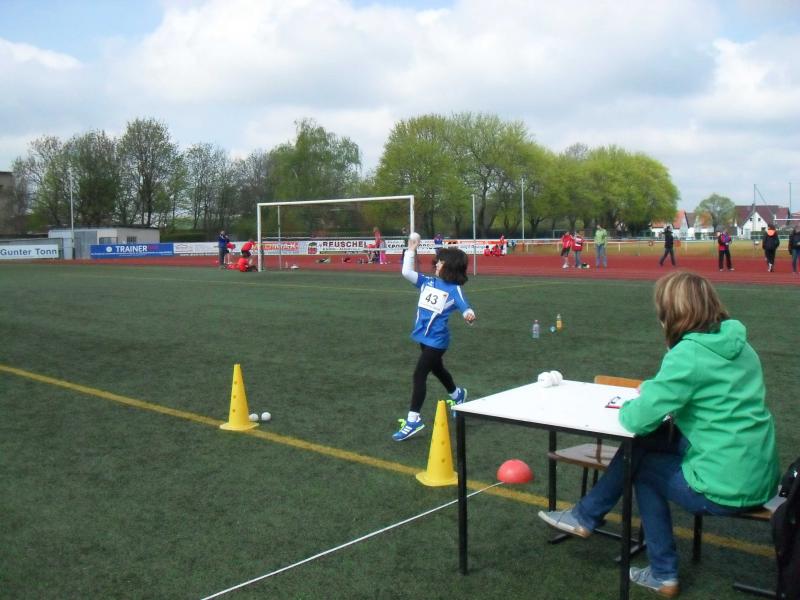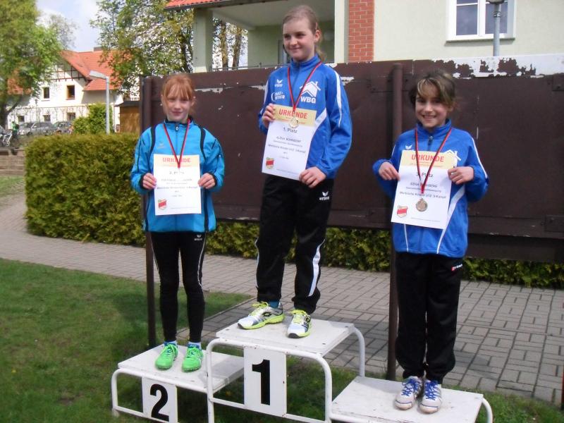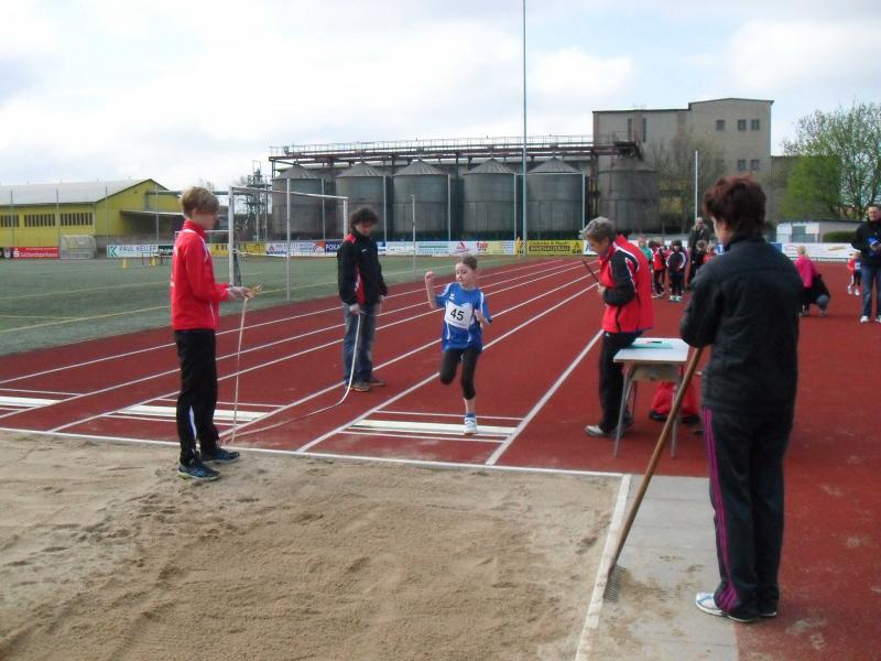 In Altersklasse w8 waren Pia Hiltscher und Melissa Helmecke am Start. Während Melissa sich mit 2 PB im 50m Lauf und im Weitsprung Platz vier erobern konnte, verbesserte Pia im Schlagballweitwurf ihre Bestmarke auf 13,50 Meter. Sie wurde Sechste. Lara Hiltscher (w10) freute sich mit 716 Punkten im Dreikampf über Platz 3. Viel vorgenommen hatte sich wieder Alina Bohndorf (w11). Der nicht abgepfiffene Fehlstart einer Konkurrentin im 50m Lauf irritierte sie jedoch und eine Bestzeit war nicht mehr möglich. Den Sieg holte sie sich trotzdem in 7,99 Sekunden. Mit 24,00 Metern im Schlagballweitwurf gelang ihr dann noch eine neue PB. Auf dem obersten Podestplatz konnte die Gymnasiastin glücklich für 1134 Dreikampf-Punkte Medaille und Urkunde entgegen nehmen.