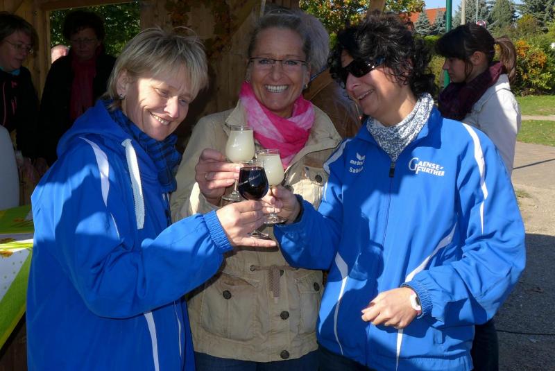Für den neunten Wertungslauf im Gaensefurther Läufercup nahmen die hiesigen Sportler eine lange Anreise in das Mansfelder Land in Kauf. „Wieso soll ich die sechs Kilometer laufen?“, blickt Katrin Krebs fragend auf ihre Meldeunterlagen. Eigentlich auf die 17-Kilometer-Distanz fixiert, nahm sie zur Kenntnis, dass für die weiblichen Starter nur die kurze Strecke in die Wertung ging. Etwas wehmütig verfolgte sie den Start über den langen Kanten, welcher die Männer auf einen anspruchsvollen Rundkurs entlang der bekannten „Weinstraße Mansfelder Seen“ führte. Fünf Minuten später wurde es auch für die Frauen ernst. Fröstelnd kämpfte man auf den ersten drei, meist abschüssigen Kilometern, gegen den eisigen Wind. Erst als es wieder bergauf ging, wurde die Kleiderauswahl als vollkommen richtig abgehakt. Nach einer halben Stunde war auch schon wieder alles vorbei. Krebs als Gesamtzweite aller Frauen, durfte gleich zwei Mal auf das Treppchen und zählt nun zwei edle Weine als ihr Eigen. Da hatte sich die Streckenauswahl dann doch gelohnt. Auch Annett Lampe und Petra Becker waren auf flinken Sohlen unterwegs, womit zwei weitere Läuferinnen der Gaensefurther Sportbewegung zu den glücklichen Altersklassen-Platzierten gehörten. Lautstark von den wartenden Damen angefeuert, walkte Ilka Barteld-Pfeiffer haarscharf vor ihrer Konkurrentin über die Ziellinie. Sie hatte ihren Spaß auf der Strecke. Und einen weiteren Vorteil hatten die sechs Kilometer! Alle Damen applaudierten bereits frisch geduscht, als dann auch endlich die Männer wieder eintrafen. Gemeinsam kämpften sich Jörg Eisfeld und Dirk Meier durch das wellige Gelände. Die Versuchung an der Weinstraße war wirklich groß, lockten doch viele geöffnete Weinberge zur Federweißer-Verkostung. Ein paar Pröbchen waren also dem Veranstaltungsende vorbehalten. Während sich Eisfeld wichtige Punkte im Gesamtcup sichern konnte, endete für Meier ein letzter längerer Test für den München Marathon in der kommenden Woche. Gesundheitlich etwas angeschlagen, wollte sich Matthias Lampe lieber nicht auf seinen Lorbeeren auszuruhen. So standen in Höhnstedt zumindest das Durchkommen und der weitere Ausbau seiner Gesamtführung im Cup an. Mit Platz sieben in der Altersklasse M40, kommen 24 wichtige Wertungspunkte in sein Ergebnisprotokoll. Michael Barteld absolvierte erst vor ein paar Tagen den Berlin Marathon in einer Zeit von 03:48:56 Stunden. Die nun abgespulten 17 Kilometer machten ihm keine Probleme. Ein weiterer langer Lauf wird die Entscheidung bringen, ob er beim München Marathon die Gruppe der Bode-Runners verstärken wird.