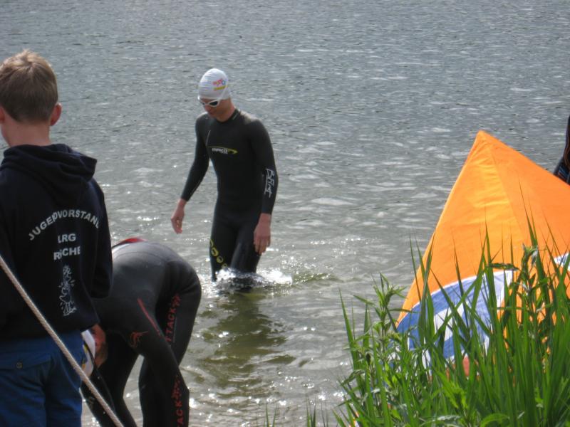 Am 01.06.2014 starteten beim 7.O-See Triathlon des Post SV Uelzen die Sportfreunde Martin Wille über die Olympische Distanz (1,5 km Schwimmen, 45 km Rad, 10,5 km Laufen) und Steffen Schöler über die Mitteldistanz (1,95 km Schwimmen, 90,6 km Rad, 21 km Laufen). Bei 17 °C Wassertemperatur, Luft gefühlte 12°C, ging es um Punkt 9:00 Uhr für Schöler an den Start am schön gelegenen Oldenstädter See. Hier hieß es dann zwei Runden mit einem kurzen Landgang zu absolvieren bevor es um 09:35 in den Wechselgarten und dann auf die Radstrecke ging. Zwischenzeitlich um 09:30 Uhr fiel dann auch für die Starter auf der Olympischen Distanz der Startschuss. Martin Wille kam nach 23:51 min. aus dem Wasser und lief in den Wechselgarten ein.