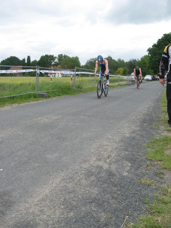 Steffen Schöler, der unterdessen schon fast seine erste von vier zu durchfahrenden Radrunden absolviert hatte, war über seine getroffe Kleiderwahl (langes Rad-Shirt) sehr glücklich. Auch wenn es beim Anziehen wertvolle Zeit gekostet hat, denn der Wettergott meinte es in Niedersachsen nicht ganz so gut mit den Sportlern. Die Maximalwerte von 17°C und keine Sonne sind nicht unbedingt die Lieblingstemperaturen der meisten Triathleten.