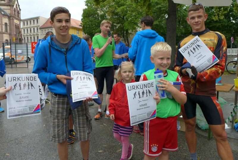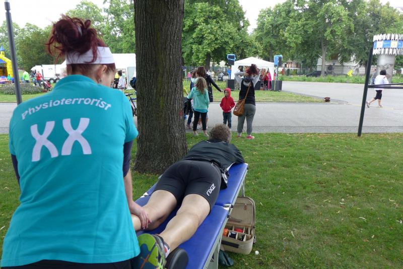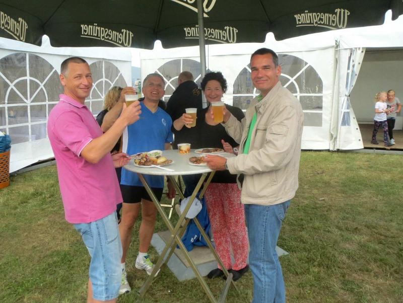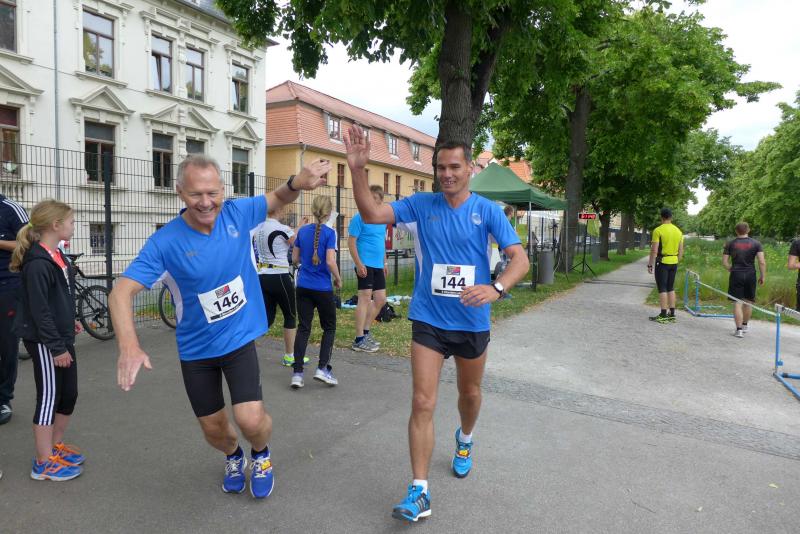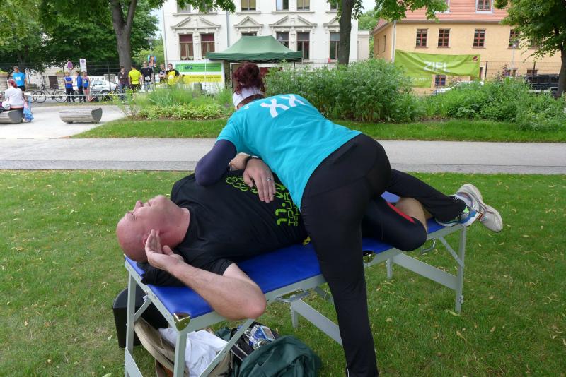 Das Rahmenprogram in der Herrenbreite war vielfältig. Während manche Teilnehmer in den Laufpausen das Sportabzeichen ablegten, erproben sich andere im modernen Biathlon. Mitunter kam es vor, dass der einlaufende Sportler vergebens nach seiner Ablösung Ausschau hielt und erneut auf die Runde gehen musste. Aus dem Team „LEX Laufexperten“ feierte Finn Lampe erst vor ein paar Tagen seinen sechsten Geburtstag. Er war nicht nur der jüngste Teilnehmer des 8-Stunden-Laufes, er war auch der ehrgeizigste! Mit Jan Hübner (8 Jahre) hatten sich zwei gefunden, die nicht zu stoppen waren. Inzwischen hatte die Physiotherapie viel zu tun. Auf der Liege wurden hart gelaufene Waden, Muskelkrämpfe oder Rückenschmerzen direkt vor Ort bekämpft. Über acht Stunden sorgte der Veranstalter für eine optimale Verpflegung der Läufer. Jens-Uwe Börner wähnte sich bereits im Cola-Schlaraffenland. Die Rundenauswertung wurde zu jeder vollen Stunde bekannt gegeben. Am Ende standen 105 Runden im Ergebnisprotokoll der Clopay-Männer-Staffel. Für die Mix-Staffel der „LEX Laufexperten“ erlief Wirbelwind Lampe stolze zehn Runden. Viele Teams ließen es sich nicht nehmen, die letzte Runde dieses langen Laufevents gemeinsam zu genießen. Der 2. Aschersleber BewegWasTag ging mit 1.361 erlaufenden Kilometern in das Protokoll ein. Das ist im nächsten Jahr bestimmt noch zu toppen.