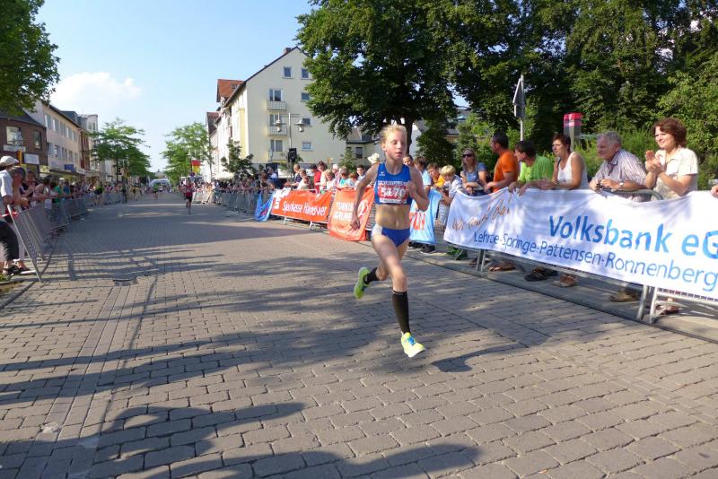 Nach den ersten Zieleinläufen über die 4-Kilometer-Distanz erspähte Trainer Steffen Matthess mit suchendem Blick seine Läuferin. Sophie Kretschmer, Youngster in der W U14 vom Leichtathletik Club Aschersleben, war als allererste weibliche Teilnehmerin über die Ziellinie gerast. Nach schnellen 15:50 Minuten stoppte die Zeitnahme. Kopf an Kopf mit einer 20-jährigen Läuferin vom Lehrter SV unterwegs, rettete Kretschmer im Schlussspurt ihre Siegprämie über die Ziellinie. Mit stolzer Brust schob Matthess seinen Schützling auf die Bühne. Und dabei hatte die junge Athletin nur eine halbe Stunde zuvor bereits den Sieg über den 2-Kilometer-Wettkampf in der Tasche.