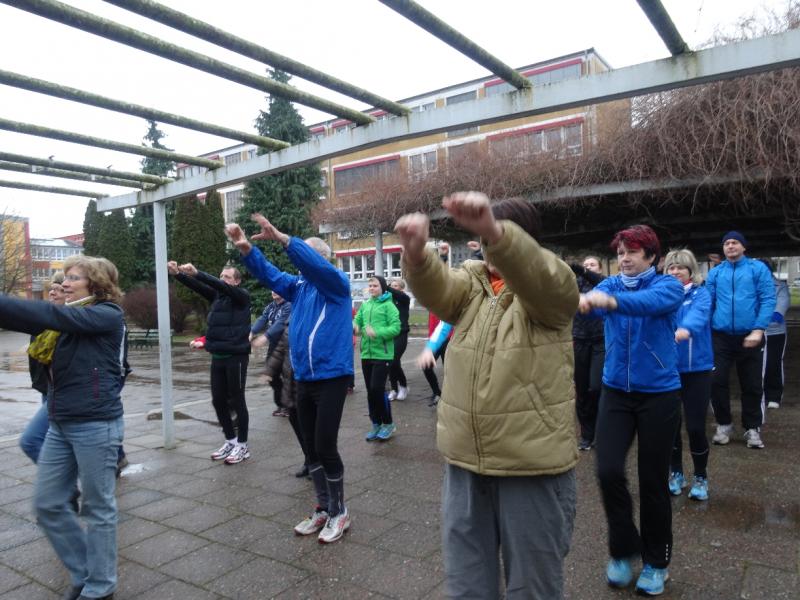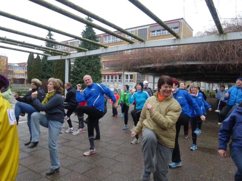 Die Strecken bis zu 3000 Meter waren gekennzeichnet. Die Nordic-Walking-Sportler, eine Abteilung des Sportvereins, starteten 30 Minuten früher, weil sie ja für die gleiche Strecke gegenüber den Läufern mehr Zeit benötigen. Diese hatten mit Staßfurts Oberbürgermeister René Zok prominenten Besuch am Start. Nach einer Erwärmungsgymnastik versammelten sich dann die Läufer vorm Sportplatz. Unter den Teilnehmern auch in Förderstedt untergebrachte Flüchtlinge aus Syrien.