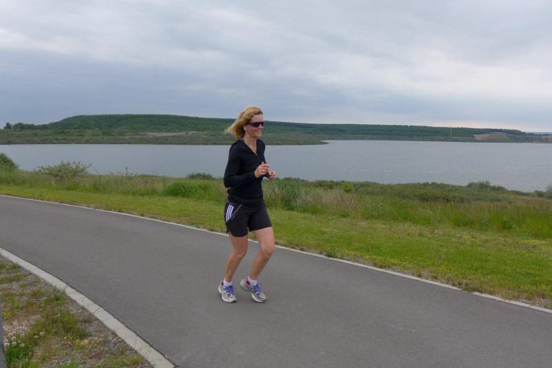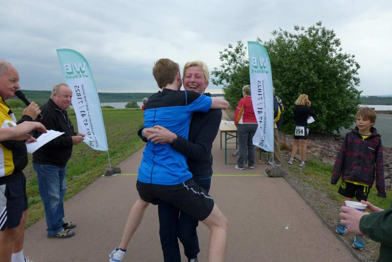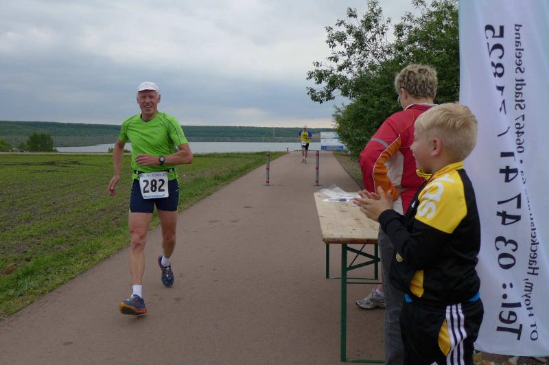 Mit dem gemeinsamen Start über die 7,2 und 14,4 Kilometer wurde es dann auch für die Hauptläufe ernst. Der Kurs führte zuerst durch die bunte Schadelebener Ferienhaussiedlung, noch einmal zurück zum Start- und Zielbereich, bevor der Abenteuerspielplatz bei Neu Königsaue angelaufen wurde. Auf der Seepromenade führten die letzten zwei Kilometer wieder zurück zum Aussichtspunkt nach Schadeleben. Bis auf einen heftigen Anstieg versprach die Strecke schnelle Zeiten. Holprige Wiesen- und Schotterwege verliehen dem Kurs zudem Cross-Charakter. Für die Langstrecke ging es auf eine zweite schweißtreibende Runde. In den dichten Waldabschnitten dämmerte es bereits, ein Zeichen dafür, wie spät es eigentlich schon war. Als der frische Seewind wieder zu spüren war stand dann fest: „Jetzt ist es nicht mehr weit!“ Bis auf den Fotografen, konnten alle Bode-Runners in ihren jeweiligen Altersklassen einen Podestplatz verbuchen. Sylvia Köhn nahm für den dritten Platz auf der Langdistanz im Gesamtklassement der Frauen noch einen Pokal mit nach Hause. Was für ein Start in das Wochenende!